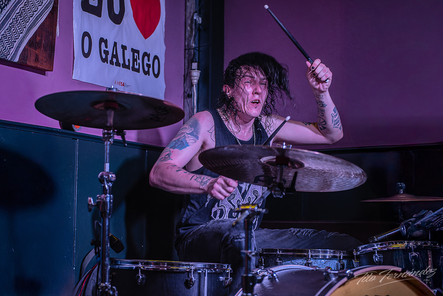 Comenzó todo el viernes por la tarde en el local ya habitual para los conciertos Lestrato, el Auriense. Puntuales a la cita, los Stormseeds cumplieron con la difícil tarea de “descorchar la botella”. La banda metalera de Maceda se subió al escenario y los que desconocíamos a la formación nos sacaron de dudas al instante. Actitud, buenos temas y una química entre los componentes que se nota, de esa que no se ensaya, se tiene. El público responde, las cabezas se mueven y el aire se llena de distorsión y adrenalina. Potente muro de sonido sobre el que destaca la portentosa voz de Alfredo Egaña. No se podía haber elegido mejor forma de abrir el festival: poderoso rock sin filtros. Dejan al respetable satisfecho y preparado para el siguiente asalto.