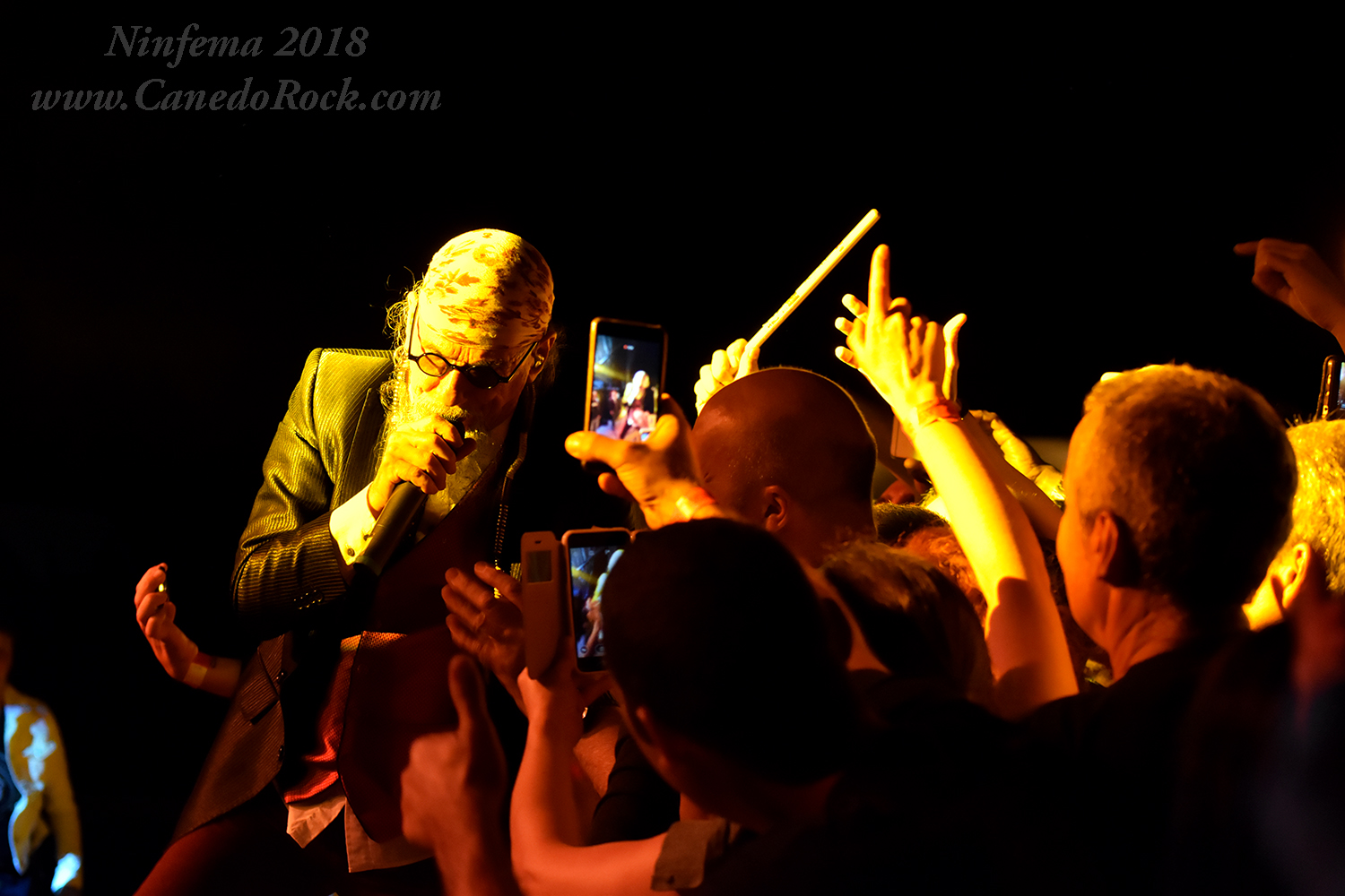 El ambiente era inmejorable, se notaba que la mayoría de la gente venia a verle a él, con lo que la complicidad con el público estaba servida desde antes de empezar, tanto fue así que a la cuarta canción ya estaba en el foso cantando con el respetable.