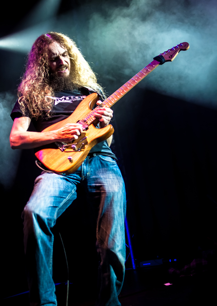 De Guhrie Govan esta todo dicho, pero todo lo que se diga es poco para elogiar a este “hacha” de las seis cuerdas. Este genial y formidable guitarrista además de una carrera en solitario ha grabado discos con Asia, Steve Wilson (Porcupine Tree) etc. Conocidos son sus “tamden’s” con Richie Kotzen, llegando a publicar algún trabajo juntos. Hoy en día es considerado como una de las mentes más brillantes a la hora de llevar sus complejas composiciones a las seis cuerdas. Su aporte en Aristocrats se hace omnipresente en todas las fases del show. Apoyándose en la excepcional base rítmica de la que son tributos Marco y Bryan, Guthrie desprende una aleación de técnicas que pasan por los bendin’s, los arpegios, el chicken-picking, el finger-picking, palm mute etc... que entremezcla con unas rítmicas brillantes y demoledoras. Sus influencias van desde Jimi Hendrix a Fran Zappa pasando por Beatles, Cream o Little Richard. Con una guitarra en las manos se nos muestra extremadamente comunicativo pero a nivel personal acontece como un hombre tímido y reservado, dejando la iteración con el respetable de la mano de Bryan Beller que en todo momento es el que más interactuá con los asistentes tanto a nivel oral como con sus bailes y sus constantes “Headbanging”. Marco es un alarde de técnica y buen gusto en la batería, el complemento perfecto que cierra el círculo. Su aniquiladora pegada aporta al grupo el santo y seña mas metalero de la banda, lo cual no quita que sus intensidades en las pieles sean diversas y fluyan también entre el jazz y el rock en las diferentes fracciones de estos complejos temas. Un batería brutal para un grupo fuera de serie. Actualmente tanto Marco como Bryan militan como batería y bajista oficiales de Joe Satriani, además de haber colaborado en discos y giras con gente de la talla de Steve Vai, Dream Theater o Steve Wilson.