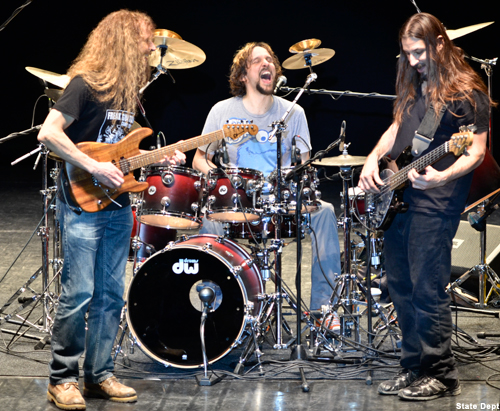 Con su rock instrumental invadieron nuestros sentidos desde el primer instante y nuestras pestañas permanecían inmóviles. Clavamos la mirada en el escenario y poco a poco percibes que estás siendo testigo de un concierto diferente donde la amalgama de estilos viaja al neo-progresive rock que de repente se diluye pegándote de bruces con un jazz-fusión sin dejar de volver a la raíz y converger con retales de metal, blues y funk que adornan la mezcla final. Un cóctel atrevido y valiente que estos excelentes músicos defienden de forma sobresaliente y que acompañan de una pasión por su música que transmiten a todos los presentes. Me rondaba la cabeza la idea de que su concierto se podría convertir en una “master-class” dadas las cualidades de estos músicos, en especial Guthrie Govan, pero nada más lejos de la realidad. El “feeling” de estos músicos en directo se palpa en el ambiente y trasmiten todo su frenesí a un público que, en trance, intenta asimilar un abanico de sonoridades infinitas. Su estado en directo es de total complicidad y cada uno aporta vectores, tangentes y vértices musicales que hacen de su música una ecuación matemática de un ingenio y vistosidad innegables que a a su vez acompañan de una pasión que hace que el público crezca en emoción en cada uno de sus temas.