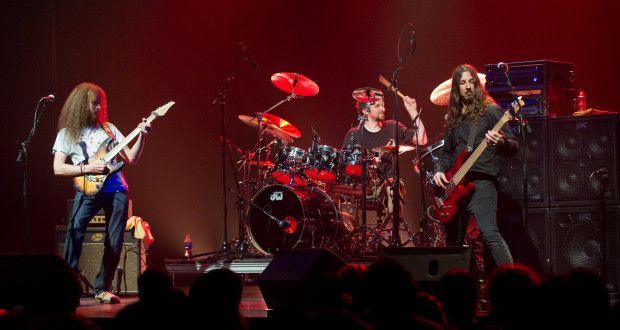 Viernes caluroso de un 21 de septiembre en el “foro”. Si, en esta ocasión CANEDOROCK se desplazó a Madrid buscando sueños pero al mismo tiempo poder disfrutar de la música en directo de The Aristocrats. Me reencontré con la ciudad que me acogió durante algunos años y con amistades de las que me siento orgulloso y afortunado. Pusimos toda la carne en el asador y después de 600 km y un par de retenciones estábamos en la SALA MON LIVE a las 19:00 horas. El concierto estaba previsto para las 19:30 pero hasta las 20:30, y después de alguna que otra bebida espirituosa, no pisaron las tablas The Aristocrats con una sala que se nos presentaba “repleta hasta la bandera”. Este supergrupo se formó en 2011 y esta compuesto por Marco Minnenman a cargo de las baquetas, Bryan Beller en las partes más bajas y el nutriente y “alma mater” del grupo Guthrie Govan a las seis cuerdas.