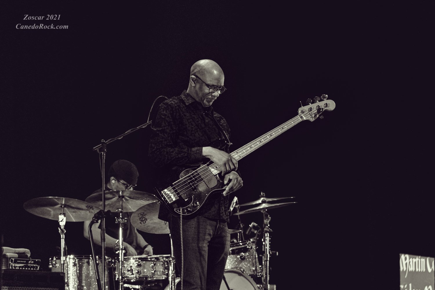 A estas alturas del show, es inexcusable, no haberse fijado en los bárbaros músicos que acompañan a Judith en esta gira de presentación de su albúm “Baby, I’m Hollywwod”. Por la derecha y al rebufo de la banda pero con un trabajo magnífico a las cuatro cuerdas de su bajo Fender, nos encontramos al padre de la criatura Pee Wee Hill. Por la derecha y casi en la cabeza del pelotón esta la que se podría llamar “la caja de música” de la banda Michito Hill, que como buena madre se lo pone todo más fácil a su hija envolviendo sus temas con un sonido que brota de su Hammond amplificado con Leslie. Se apoya en dos teclados más para sacar tesituras con diferentes registros que adornan y envuelven los temas, responsables directos de volarnos la cabeza. Todo ello capitaneado por la caja de ritmos humana del sincopado batería Chaun Dupre Horton, hace que los show’s de Judith tengan una pegada imborrable en el recuerdo. Intercalando su principal disciplina a las seis cuerdas con la del piano, sigue descargando temas y nos fusila con “You can’t blame me” de su disco “Golden Child”.