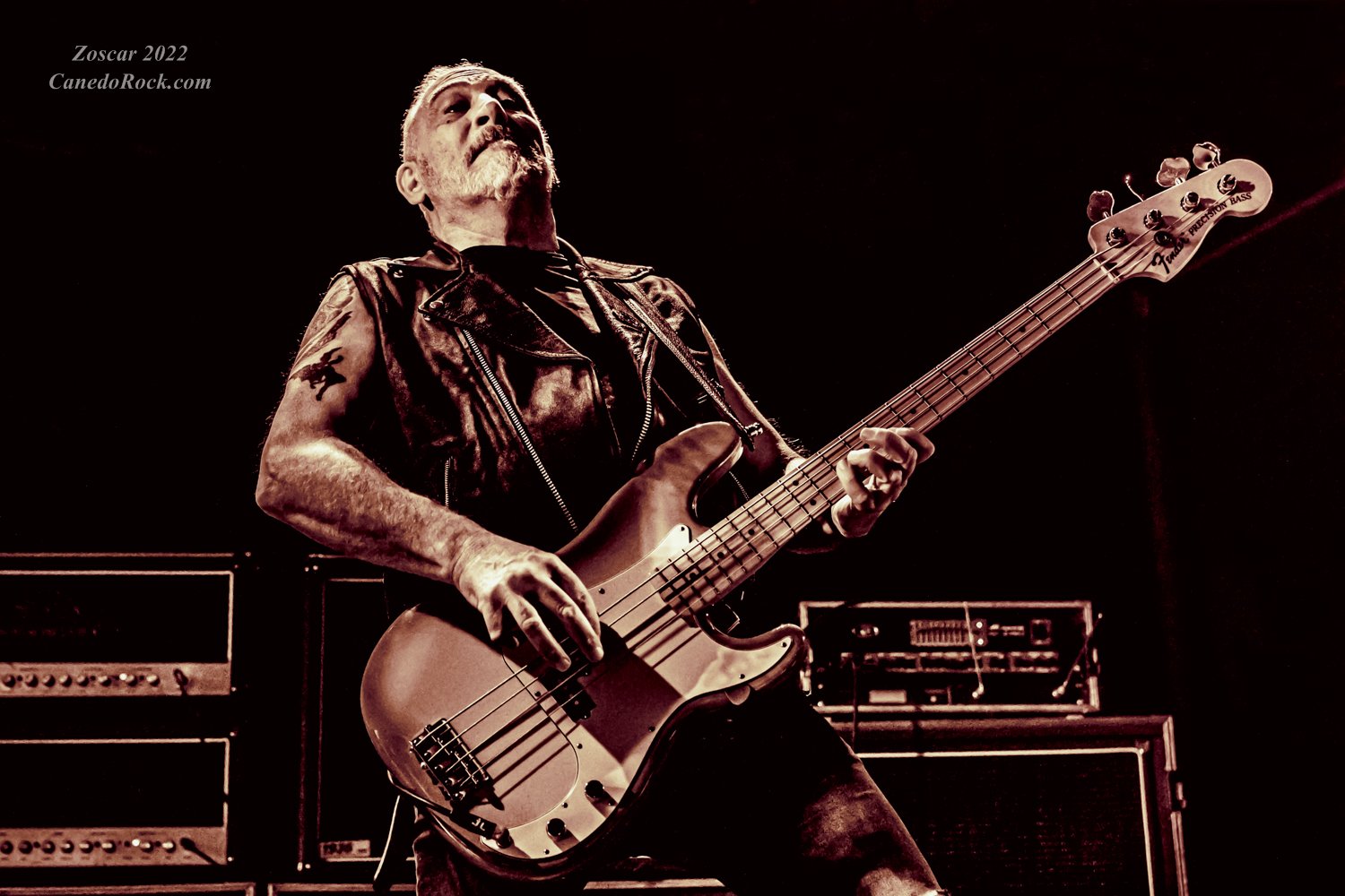 En la batería, atrincherado tras un biombo acristalado, Rafa Díaz cuya actuación fue soberbia para aportar la gasolina que la noche necesitaba para no venirse abajo. Y, si alguien se lo pasó bomba en la sala, ese fue José Luis Morán al bajo; un tío que no para quieto en el escenario sonriendo en todas las notas y manteniendo un contacto visual, fulminante e interminable, contra un público que siempre correspondió con unos cuernos o una birra en alto.