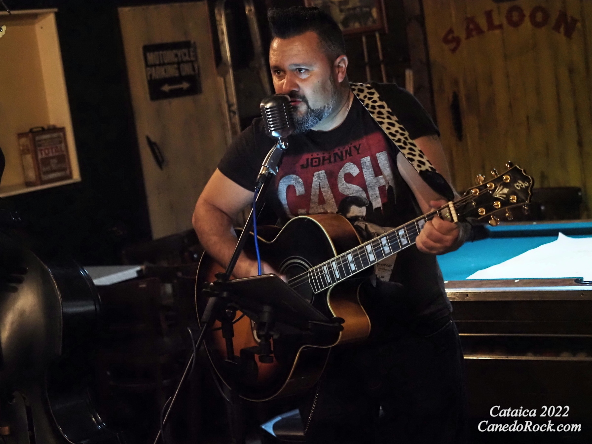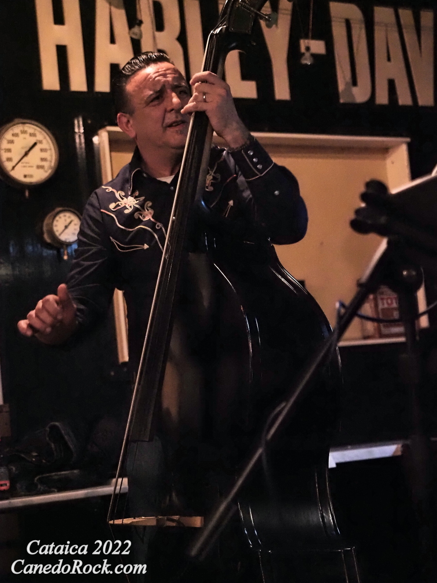 Es por ello que asistí en gran congregación a la ceremonia que el día de los autos se celebró en el por Sus Señorías calificado como antro y por mi tenido como templo Biker Bar Ruta 66 en la ciudad de Ferrol, liturgia en la que fuimos oficiados de los ritos y ritmos rockanroleros que celebraron los miembros de la hermandad conocida como Rockers y Fredy, con el padre predicador Fredy Rocker al frente con poderosa voz y guitarra acústica, el reverendo Quique Pazos al contrabajo, que es como sello y garantía de rock añejo de reserva, y el acólito Cabe García a la guitarra eléctrica, brillante heredero de los eximios Dick Dale o Link Wray por no explayarme más en el augusto panteón de los guitarristas del clásico estilo.