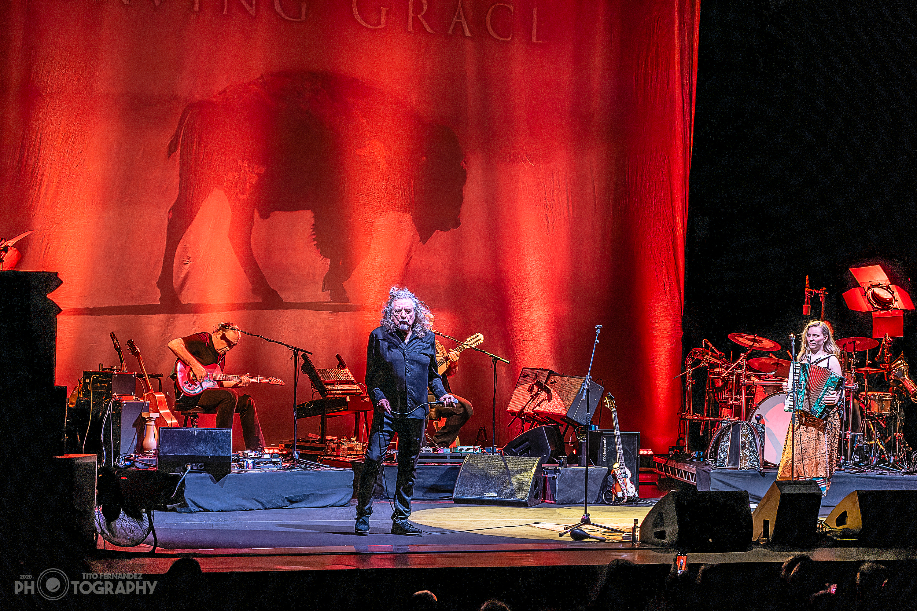 Por supuesto y como no podía ser de otra manera, el “Dios Dorado” es el objeto de referencia sobre las tablas. Su saber estar, su aura, su historia, su color de voz único,… lo llenan todo, pero ha sabido rodearse de la excelsa formación que le acompaña para desarrollar lo que ahora realmente le divierte. Las cuerdas son compartidas por Tony Kelsey y Matt Worley, cambiando de instrumentos a cada tema (mandolina, banjo, guitarras eléctricas y acústicas). La sutil percusión es cosa de Oli Jefferson y la voz, además del acordeón y del bajo eléctrico, para la sublime Suzi. Su primera actuación como Saving Grace fue en el 2019 y desde entonces han realizado varias giras por el viejo continente. En el año siguiente Plant registró el nombre de la banda, algo que nunca había hecho con anterioridad en sus proyectos en solitario, lo que confirma el interés a medio plazo en el proyecto y la perspectiva de continuidad del mismo.