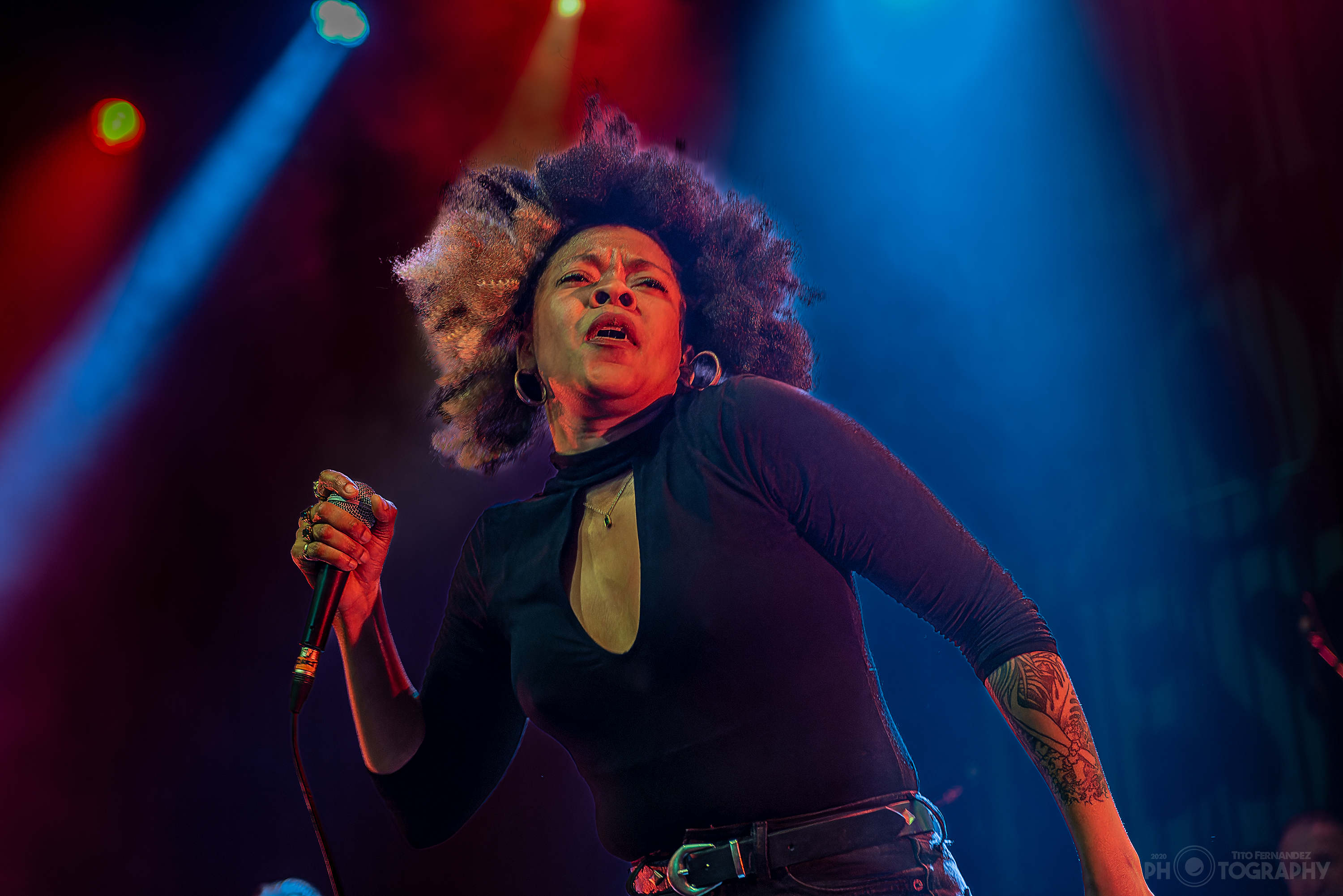 Realmente Nikki Hill no defrauda nunca. Esa fusión de blues, garaje, rock n roll y soul. Esa mezcla de seducción, dulce amenaza y energía ardiente. Esa comparación, que en algún sitio lo leí, con el irrepetible púgil Mohamed Alí por aquello de que flota como una mariposa pero pica como una avispa. Esos ramalazos de Otis Redding, James Brown, Little Richard y sobre todo de Wanda Jackson…. Transmiten una corriente de energía que ha de ser devuelta por el público para que el círculo se cierre y así la conexión sea total. En una entrevista la vocalista contestó sobre la necesidad de darlo todo entregándose al cien por cien cada noche: “el público podría elegir estar en cualquier otro lugar y ha elegido estar aquí con nosotros… a él me debo”.
