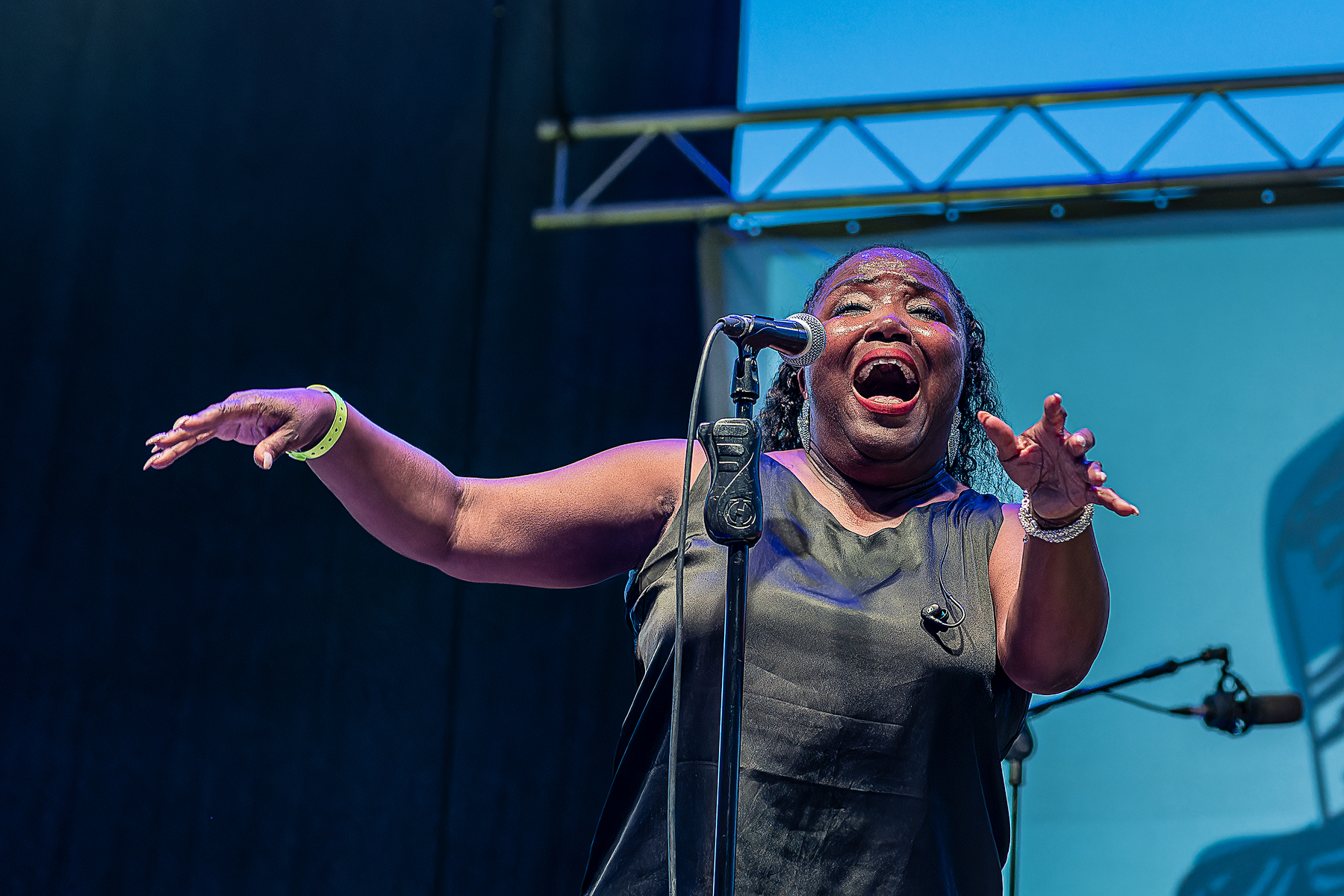 De abrir la jornada del sábado en "La Ancianita" (la plaza de toros más vieja del país) se encargó la "primera dama" del panorama gospel/blues/funk británico actual. la londinense Izo Fitzroy.