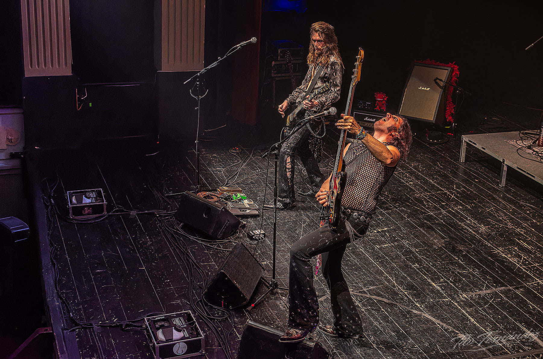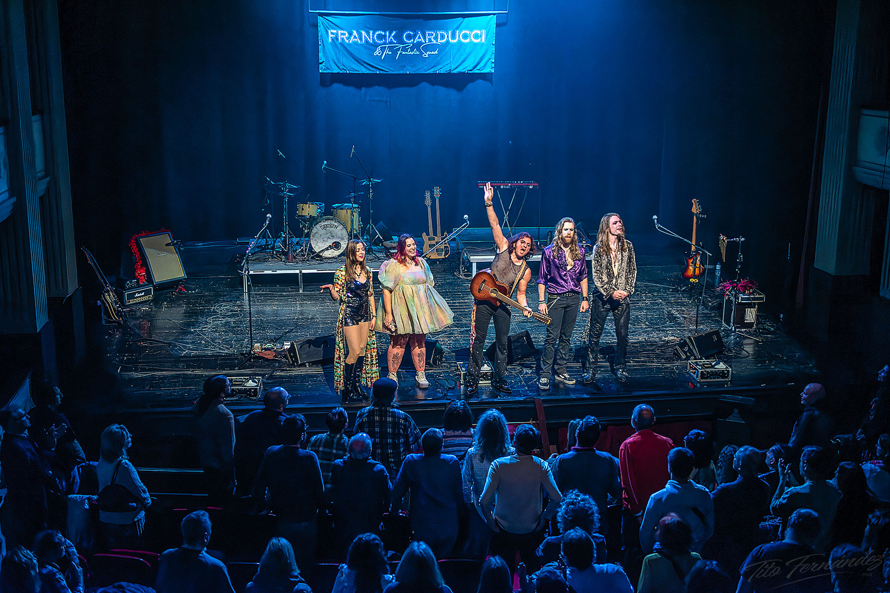 El concierto dio comienzo con la sala completamente a oscuras mientras el sonido del dial de una radio navegaba entre emisoras descubriendo éxitos rocanroleros. Se hizo la luz y apareció el "Equipo Fantástico" sobre el escenario de un teatro con media entrada, mezcla de fans de viejo y curiosos atraídos por la reputación del primer espada. Carducci pospone las presentaciones para más tarde y la banda va al grano desde un primer momento dejando claro el porqué son considerados como uno de los grupos con más talento dentro de la escena del rock progresivo actual. Suena “Slave to Rock n Roll”, convertido ya en un himno para la banda, el hard se mezcla con el glam potenciado por vigorosos riffs de guitarra y una poderosa base rítmica. Toda una declaración de intenciones para romper el fuego. La banda va desgranado un repertorio que deambula entre la caricia envolvente de los teclados de Cédric Selzer y la dulce voz de Mary Reynaud, y la complejidad de las guitarras de Barth Sky y el propio Carducci, siempre completados con la ajustada base rítmica de Lea Fernández. Temas largos, cambios de ritmo y variaciones instrumentales. No se inventa nada nuevo pero lo que se hace se ejecuta a la perfección. Los músicos a nivel individual son excelentes, pero juntos crean una química impecable para llevar así al público a través de paisajes sonoros cautivadores. Entre tema y tema, Franck a pesar de las dificultades idiomáticas (uno de los grandes handicaps del show al no entender las letras de las canciones y no poder relacionarlas con la puesta en escena ) no duda en interactuar con el público, bromeando e intentando convertir el escenario en un espacio para compartir. Cae en acústico y en solitario una versión del clásico “Wish you were here”.