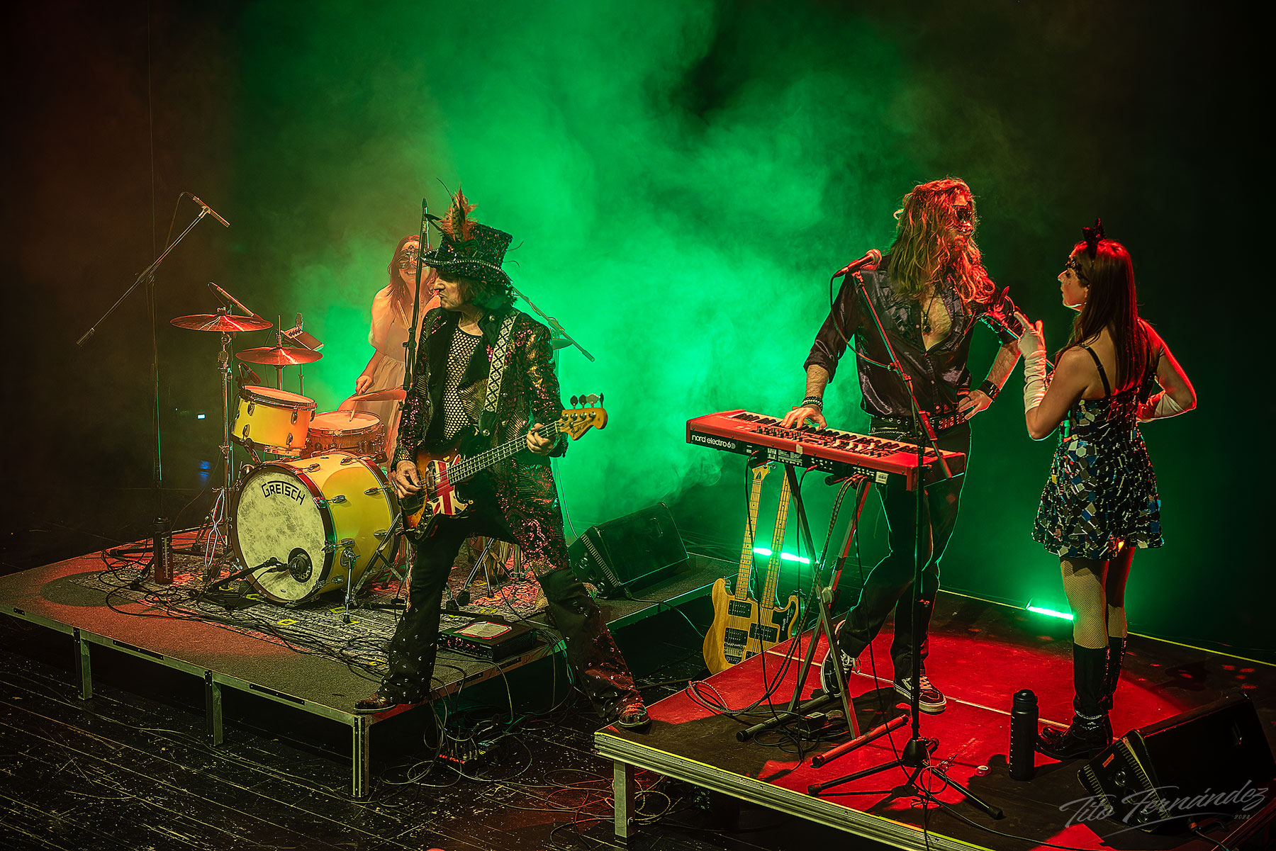 El enfoque escénico de los shows de Carducci y su banda los hace únicos. Las caracterizaciones de los músicos, los juegos de luces y la teatralización de las canciones hace que la magia visual complemente a la perfección a los temas que se van desarrollando añadiendo valor al conjunto. “The Angel” y “Alice’s Eerie Dream” son buenos ejemplos de ello. Cada tema es una historia en si mismo, con arreglos complejos, cambios de tiempo sorpresivos y solos que dejaron boquiabierto al respetable. El show llega a su fin con la banda cantando a capella (“On the Road to Nowhere”) con el público puesto en pie.