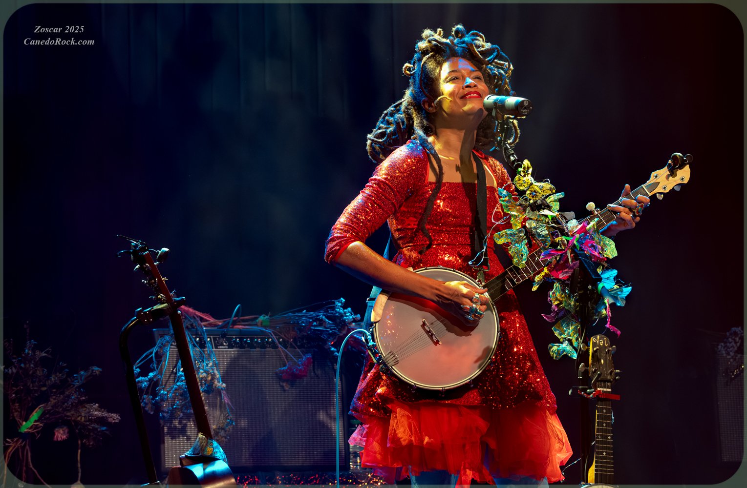 Después de la obligada parada para liberar y cimentar el escenario con los nuevos cachivaches, nos sumimos, en gravedad cero, con la actuación de VALERIE JUNE. Su marca de agua es el blues, el folk americano, el gospel y, sobre todo, el soul creando un cóctel fresco, original y, mayormente, muy personal. Su sensibilidad para con la interpretación eriza lo pelos, creando en vivo y en directo un lienzo lleno de luz y color.
