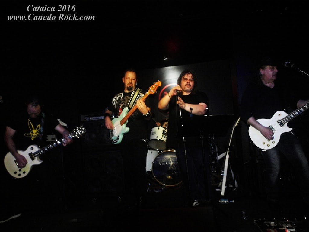 Fueron bastante puntuales a la hora de iniciar el show con “Via Crucis”, el tema que da título a su reciente trabajo discográfico, una letra que como ya comentábamos en la reseña del álbum reflexiona sobre la necesidad de no desperdiciar nuestras vidas y llenarlas de contenido, con un arranque más bien tétrico con cadencias muy pesadas casi en la onda de los metales más extremos de hoy en día, va evolucionando hacia ritmos y melodías exultantes, introduciendo esa sensación de superación que más de una vez hemos necesitado en nuestra biografía. El siguiente tema fue el cañero “Dr. Jones”, inspirado en las películas del personaje de Indiana Jones, y la verdad es que musicalmente es un puro desarrollo aventurero de principio a fin que no vendría mal en la BSO de uno de esos metrajes. “Amnesia” sonó todo lo contrario, tema oscuro, pesado, agónico y desesperado. Llegados a este punto, cayó la primera versión de la noche con “Te visitará la muerte” de una de sus referencias, Obús. Luego regresaron a sus composiciones propias con “El enlutado”, otra hechura tenebrista, cuya letra sería digna de un Poe.