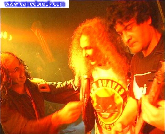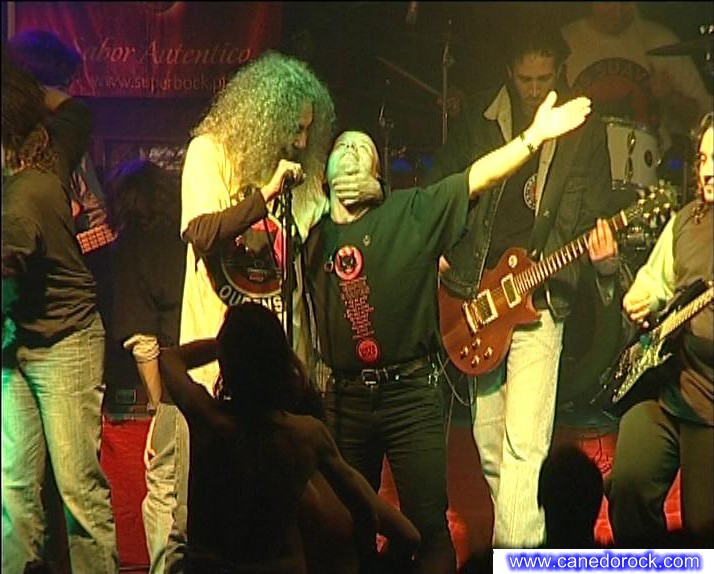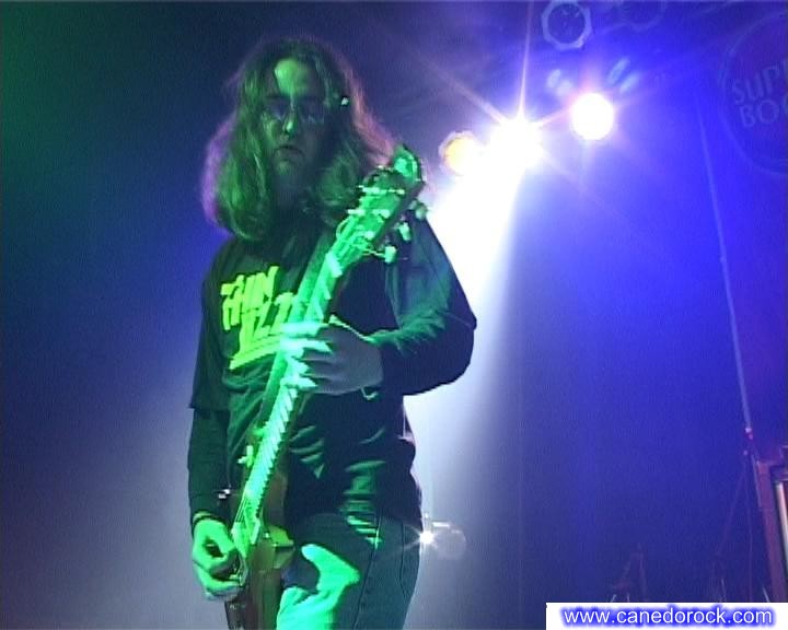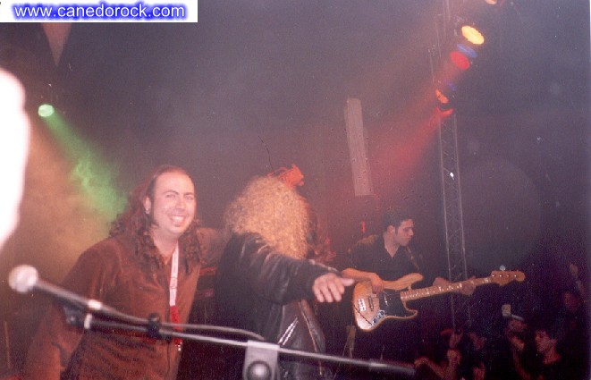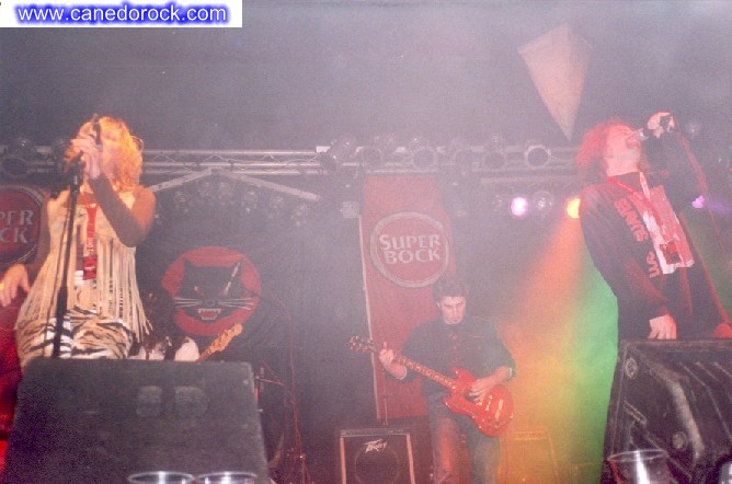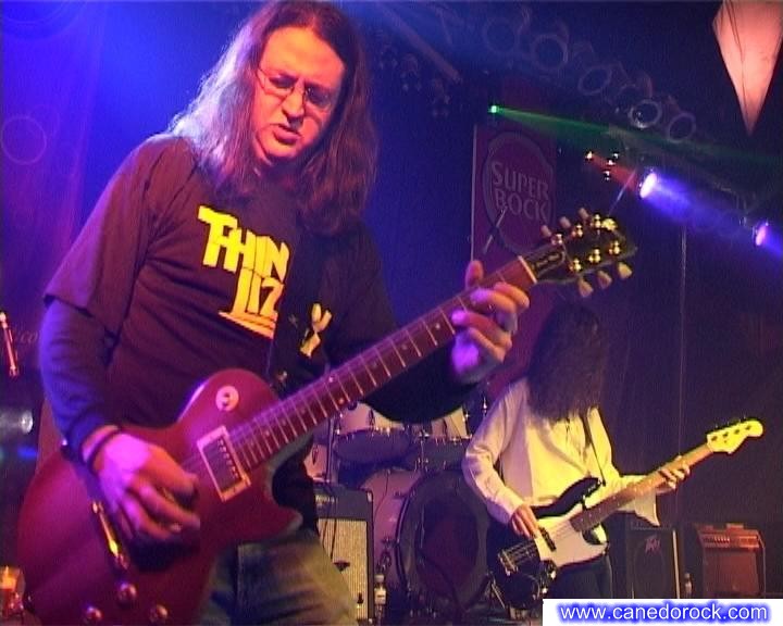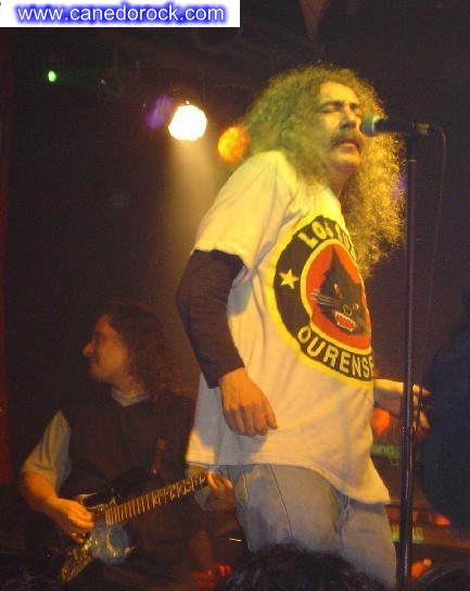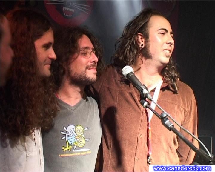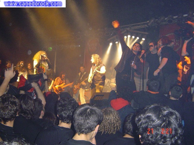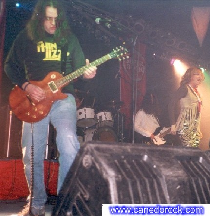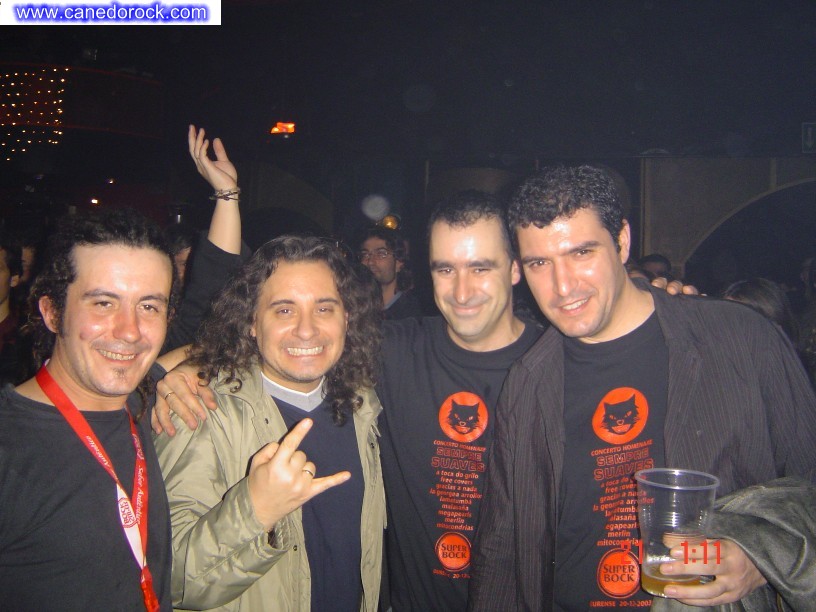Esta vez no íbamos a llegar tarde, no había excusa, ni teloneros, hoy todos eran estrellas. Coincidimos con Alberto Cereijo a la hora de aparcar e intercambiamos algunas opiniones sobre lo que iba a pasar. Pero a la entrada de la sala lo perdimos entre una nube de fans y es que aquello estaba a rebosar, no cabía nadie más. Público de todas las edades, viejos rockeros con menos pelo y más barriga, chavales que apenas tenían bigote, todos con el gato en el pecho y una sola idea en la cabeza, disfrutar con esa fiesta suave. El escenario estaba presidido por el gato más conocido del Rock flanqueado por los logotipos de Superbock, cerveza patrocinadora del evento. Una sola batería y un solo equipo para todas las bandas con el fin de evitar largas esperas entre grupo y grupo, y que fueron amenizadas por nuestro compañero M.A.M. que pinchaba temas de las bandas ourensanas que participaban en el evento y de clásicos del Rock internacional entre ellos los imprescindibles Thin Lizzy.