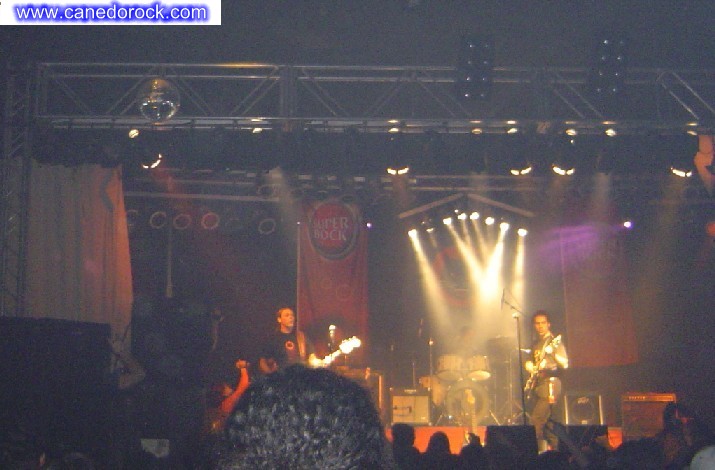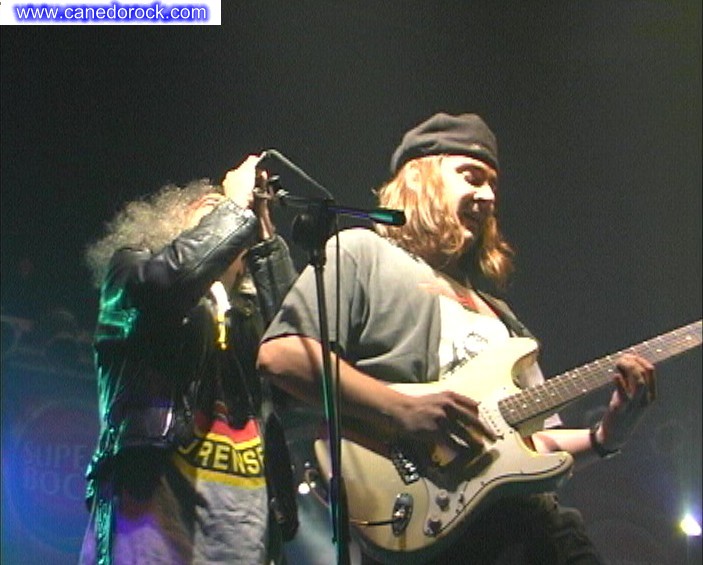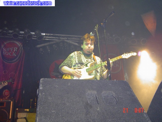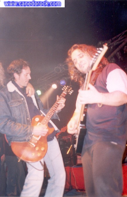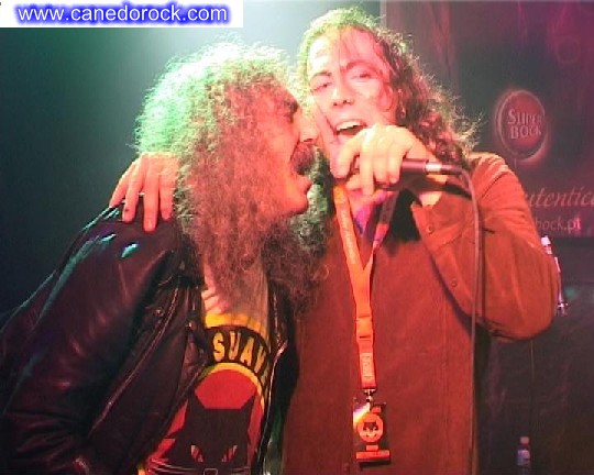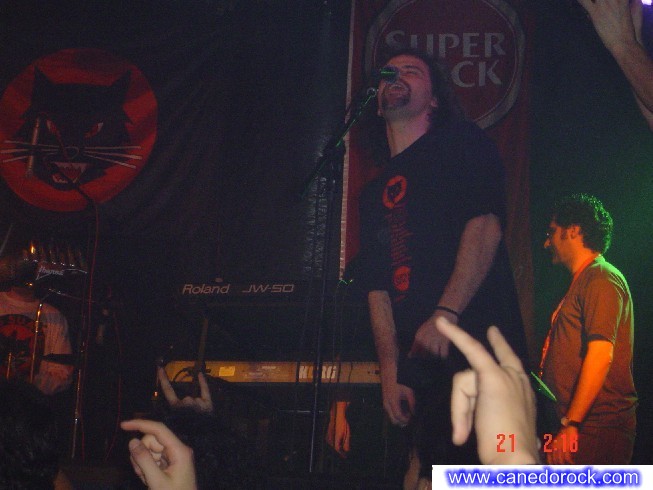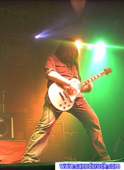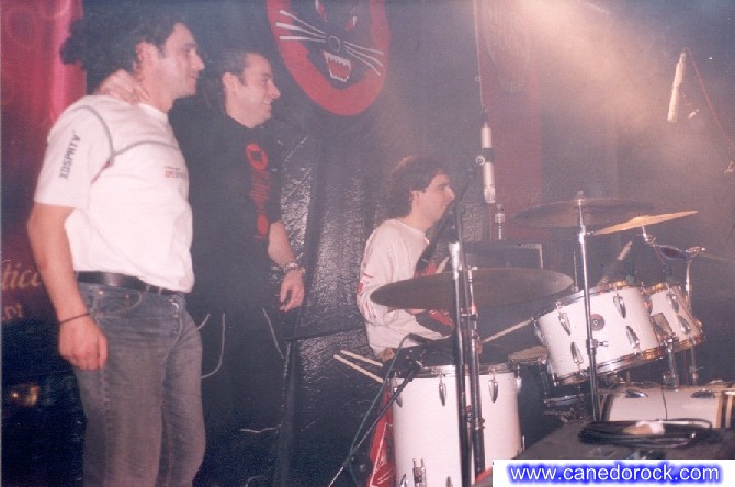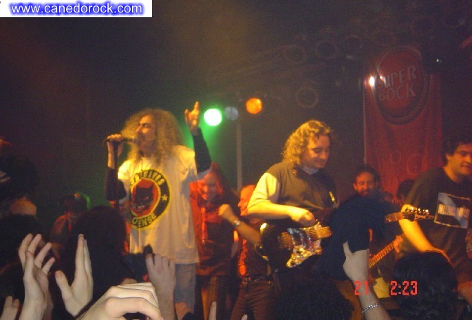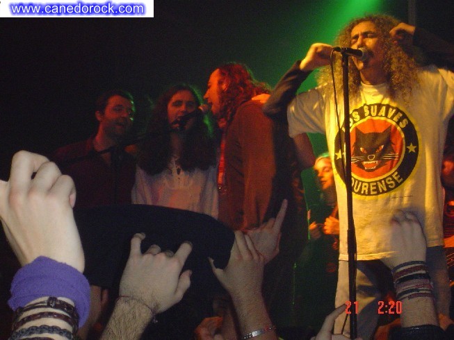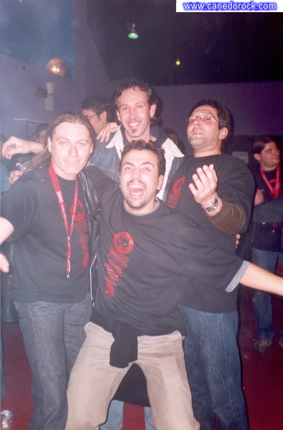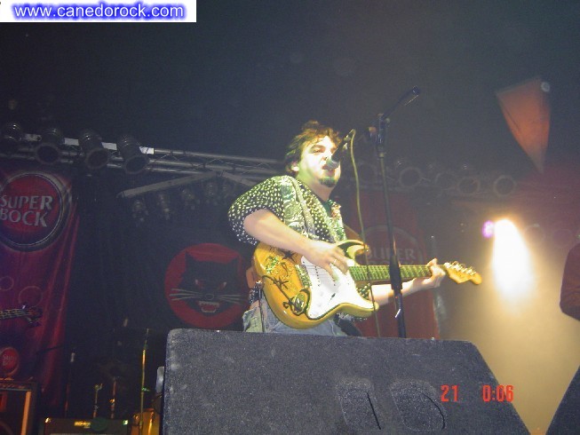 Esta vez no íbamos a llegar tarde, no había excusa, ni teloneros, hoy todos eran estrellas. Coincidimos con Alberto Cereijo a la hora de aparcar e intercambiamos algunas opiniones sobre lo que iba a pasar. Pero a la entrada de la sala lo perdimos entre una nube de fans y es que aquello estaba a rebosar, no cabía nadie más. Público de todas las edades, viejos rockeros con menos pelo y más barriga, chavales que apenas tenían bigote, todos con el gato en el pecho y una sola idea en la cabeza, disfrutar con esa fiesta suave. El escenario estaba presidido por el gato más conocido del Rock flanqueado por los logotipos de Superbock, cerveza patrocinadora del evento. Una sola batería y un solo equipo para todas las bandas con el fin de evitar largas esperas entre grupo y grupo, y que fueron amenizadas por nuestro compañero M.A.M. que pinchaba temas de las bandas ourensanas que participaban en el evento y de clásicos del Rock internacional entre ellos los imprescindibles Thin Lizzy.