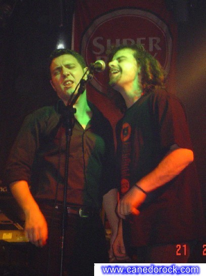 Le llegaba el turno a Malasaña, grupo del que organizó todo este evento, Dany, cantante y showman, como demostraría en su actuación. Otro compañero de inquietudes musicales de Cereijo tocaba en este grupo, Víctor, bajista. Con influencias del Rock sureño comenzó su set con “No llores mas por mi”, quizás de las mejores versiones de toda la noche, con Jorge Duda a la guitarra sustituyendo a Javito, y con Dany devorando el escenario y motivando a la peña, los coros de Víctor y Jorge le dieron a este tema una dimensión más rockera que la original. “Tiempo Perdido” continuó esa línea sureña, pero ralentizando un poco el tema. Sorpresa para la interpretación de “Si pudiera” con Carlos Costoya a la batería dejando su puesto Deza. Carlos es un conocido músico ourensano por ser uno de los primeros baterías de Los Suaves, además de haber sido voz y bajo en Lancelot y ser hermano del querido Moncho Costoya. Con el público entregado y dejándoles cantar el tema, Dany se lanzó al público y este le correspondió paseándolo por encima de sus cabezas. Finalizando Yosi salió al escenario para rematar la actuación cuando resonaban los últimos compases, provocando el delirio del respetable.