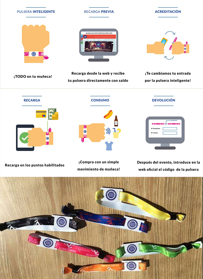 Este año El OurenRock cuenta con la novedad de las pulseras inteligentes de IDASFEST con las que además de acceder al recinto del Festival podrás efectuar pagos y olvidarte de tickets y plásticos y así también general menos residuos. Además de recargar tu pulsera sin coste alguno, si te sobra dinero al acabar el festival lo podrás recuperar integro, sin ningun coste para ti.