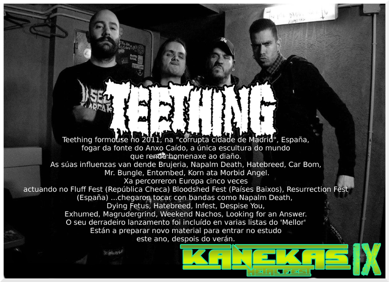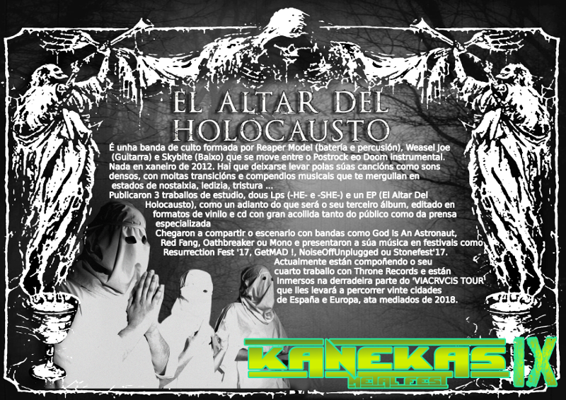 Aphonnic, El Altar Del Holocausto, Nashgul e Nazca serán os encargados da banda sonora do venres 27 e Haemorrhage, Teething, Adrift, Foscor e Cuchillo de Fuego os do sábado 28.