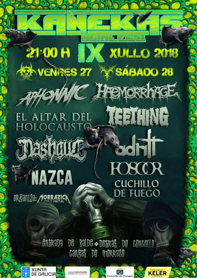 Un ano máis volta o Kanekas Metal Fest a Cangas do Morrazo. Nesta novena edición ampliase a duas fechas, 27 e 28 de Xullo, nas que pasarán polo seu escenario nove bandas.