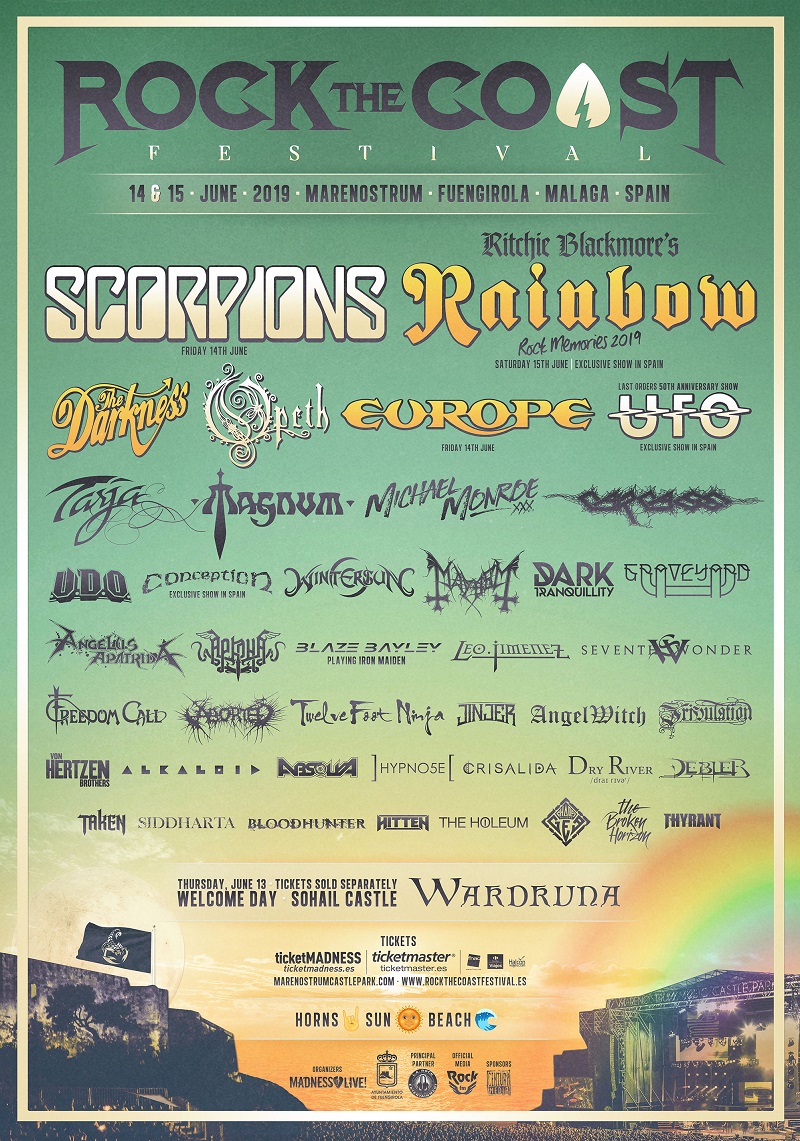 Rock The Coast Festival 2019 cierra el cartel de su primera edición con el anuncio de una de las bandas más grandes del Rock de todos los tiempos, los alemanes Scorpions encabezarán la jornada del viernes 14 de junio. Además, se incorporan grandes bandas como Europe, Twelve Foot Ninja, Seventh Wonder, Tribulation, Aborted, Von Hertzen Brothers y Jinjer, entre muchas otras.