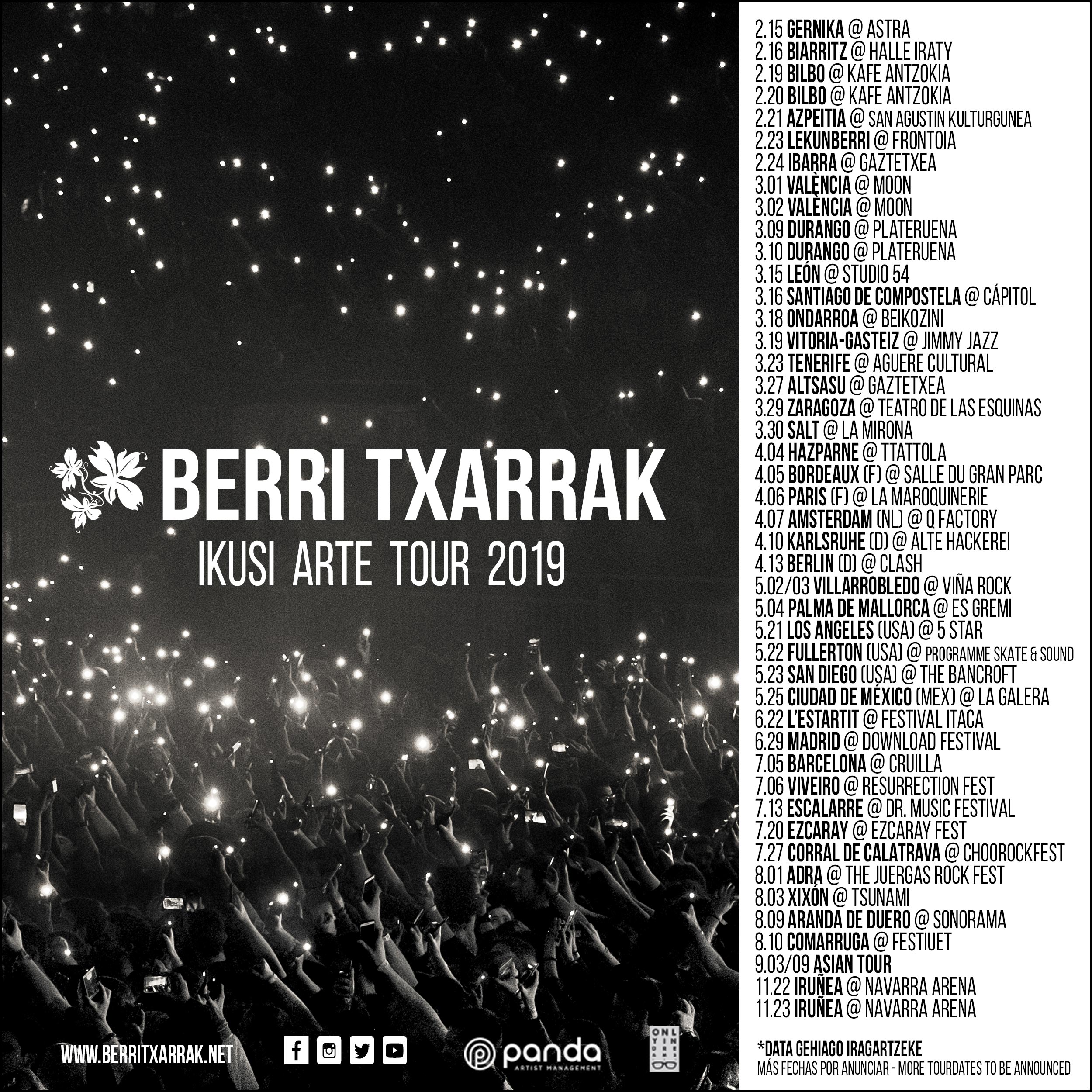 BERRI TXARRAK llegará a la Sala Capitol de Santiago de Compostela, mediada su gira Ikusi Arte Tour en la que están colgando carteles de entradas agotadas allá por donde pasan, el sábado 16 de marzo. Único concierto en Galicia de un tour con cierto sabor amargo para sus fans ya que, al final de la misma, la banda ha confirmado que habrá un parón indefinido, esperemos que vuelvan pronto. Junto a ellos, teloneando, estarán los True Montains, afincados en Galicia completarán la sesión de punk rock de la noche.