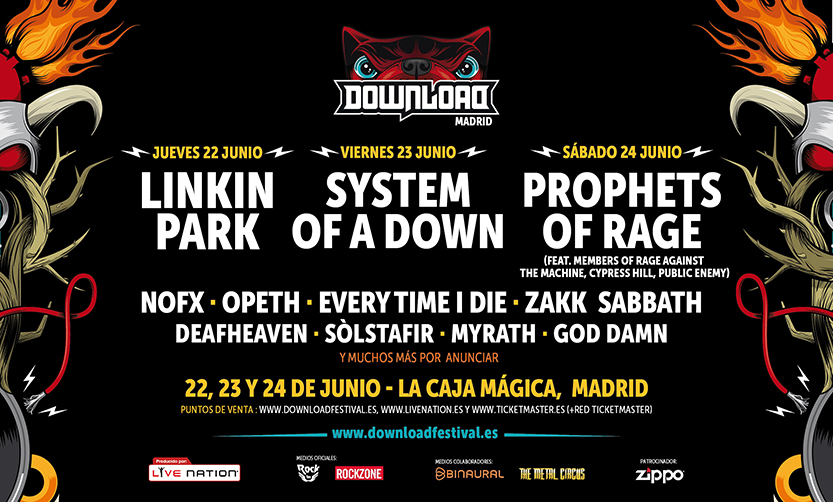 La primera edición del festival en Madrid se celebrará los días 22, 23 y 24 de junio y contará con LINKIN PARK, SYSTEM OF A DOWN y PROPHETS OF RAGE como cabezas de cartel.