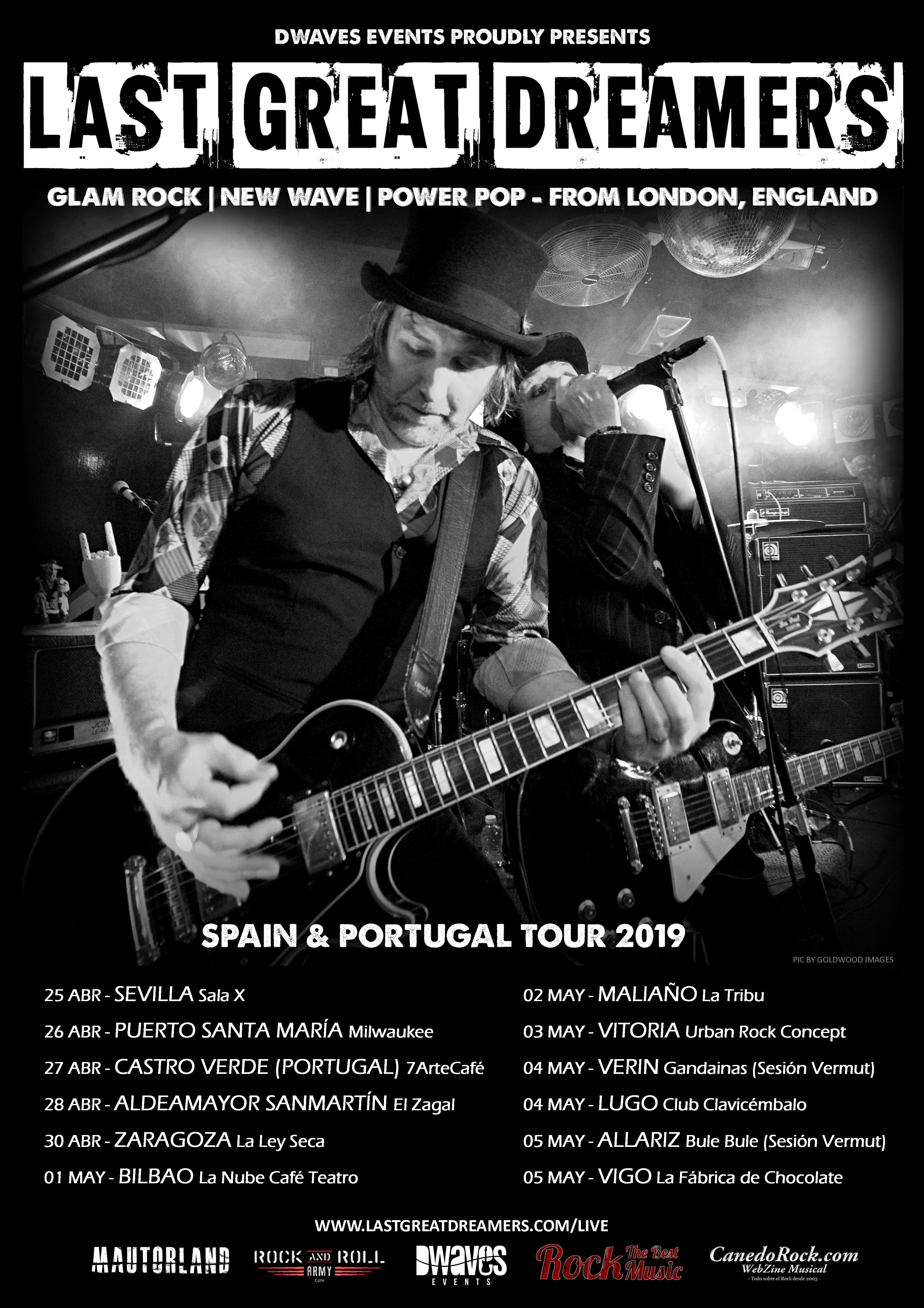 Una de las mejores bandas en su género, GlamRock / PowerPop, los británicos Last Great Dreamers, regresan por segunda vez a España tras su exitosa gira el pasado 2018. En esta ocasión traen nuevo trabajo bajo el brazo, su último LP ’13th Floor Renegades’.