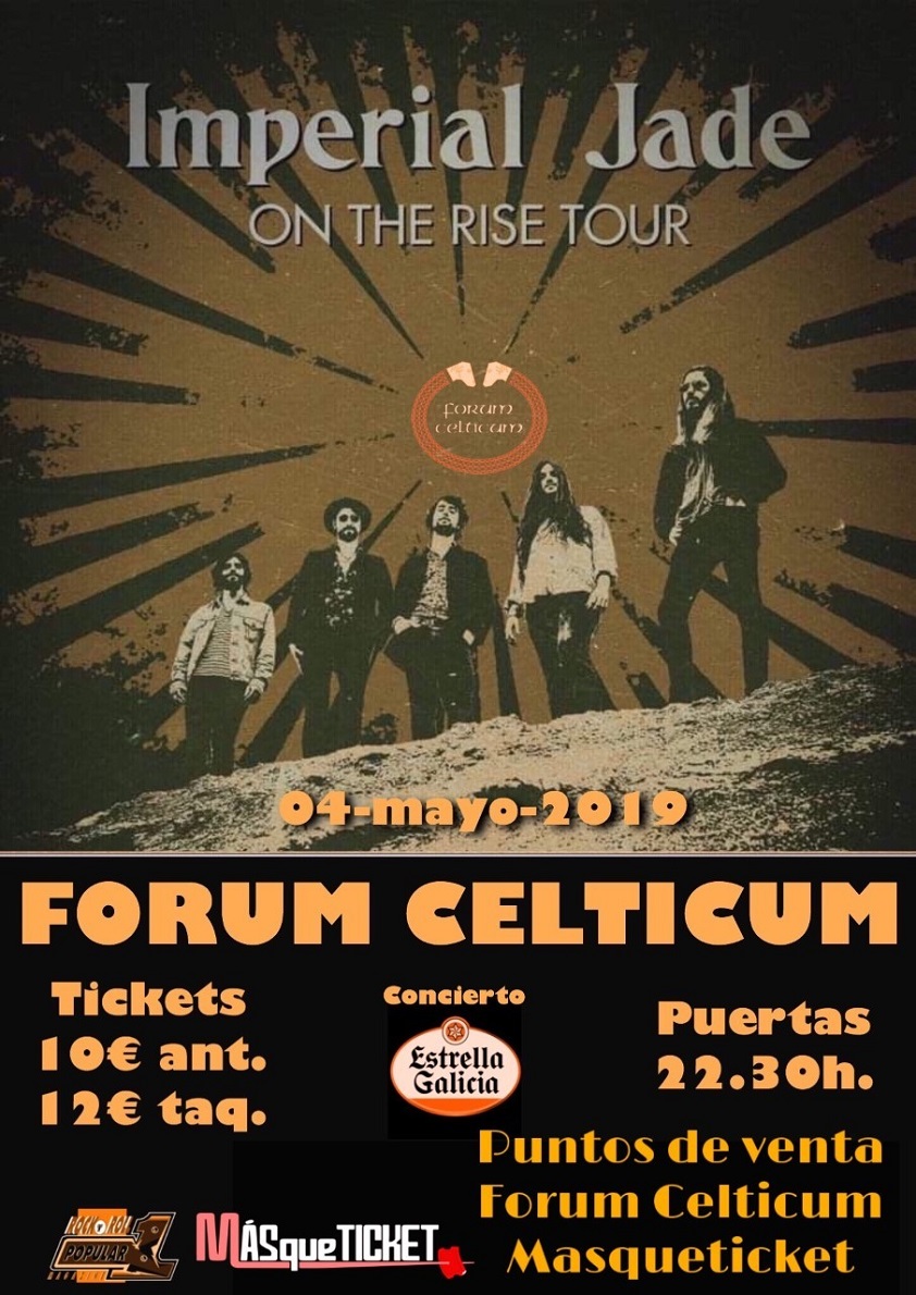 Después de 3 años sin parar de girar con su primer álbum "Please Welcome", participando en numerosos festivales como el Rock Fest BCN, Resurrection Fest, Enclave de Agua, Free Riders o abriendo para bandas como Europe o Rival Sons. Imperial Jade vuelve en plena forma para defender su nuevo trabajo "On The Rise" publicado a nivel mundial y que está consiguiendo posicionarse como uno de los mejores discos de 2018 a nivel estatal.
