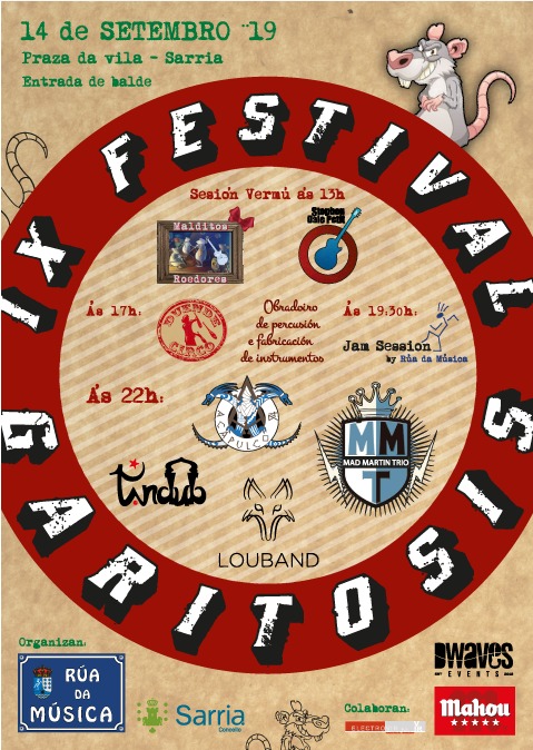 El próximo sábado 14 de septiembre se celebra en la Praza da Vila de Sarria (Lugo) la novena edición del Festival Garitosis organizado por la asociación cultural Rúa da Música donde el colectivo celebrará un año más su aniversario con conciertos gratuitos y actividades musicales durante toda la jornada: sesiones vermú, tarde y noche.