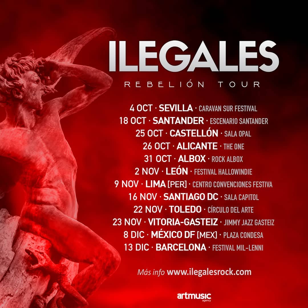 El 16 de noviembre, en la Sala Capitol de Santiago de Compostela, a las 21:00 de la noche, la gira de presentación de “Rebelión”, el último disco de la mítica banda asturiana Ilegales, se convertirá en cita obligada para todos los amantes del rock más rebelde del territorio peninsular. Referentes del rock en castellano desde hace casi cuatro décadas, Ilegales poseen un bagaje espectacular: más de 15 álbumes publicados, centenares de conciertos a ambos lados del océano, un disco de diamante, un documental llevado al cine y canciones que han traspasado la frontera del tiempo para convertirse en himnos.