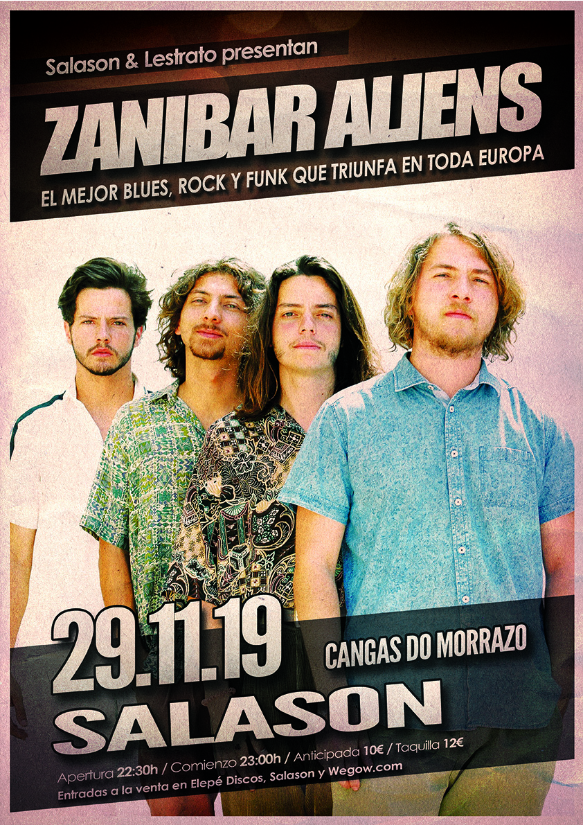 El mejor Blues Rock 70's se da cita en la Salason de Cangas do Morrazo el próximo 29 de noviembre con la visita de Zanibar Aliens. Una banda portuguesa formada por Carl Fernandes (voz, piano), Filipe Fernandes (guitarra), Ricardo Pereira (bajo) y Diogo Braga (batería).