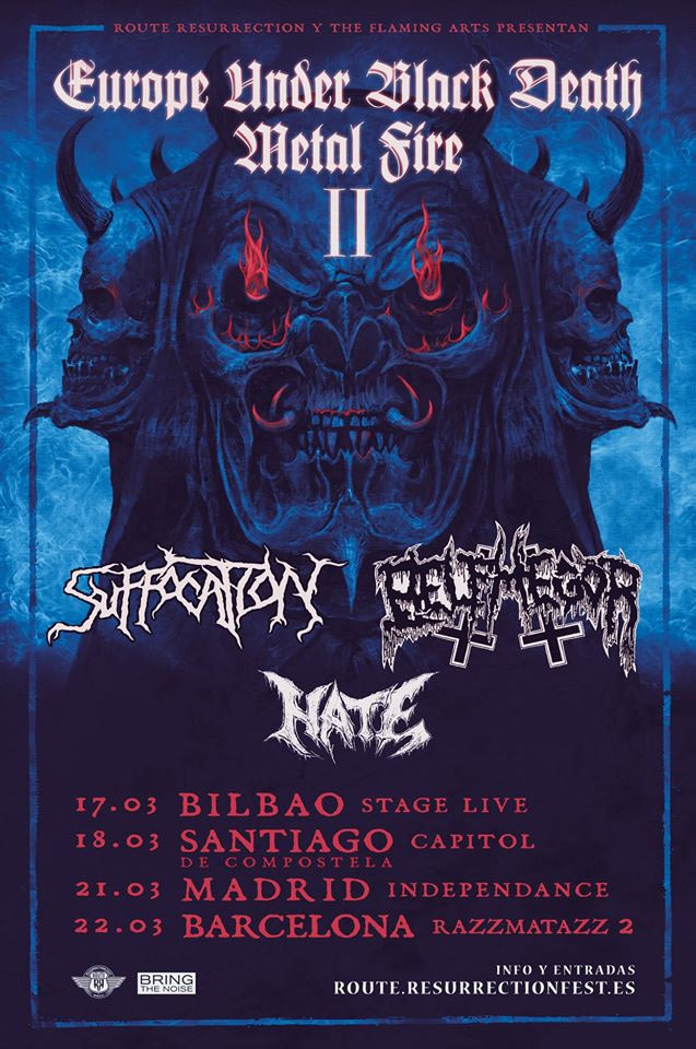 La ruta hacia el próximo Resurrection Fest está servida, en su camino, los fanáticos del festival, del Death y del Black, y del metal en general, podrán saciar su sed prematura de distorsión descomunal con una noche de metal extremo en la capital de Galicia. Será el 18 de marzo cuando, enmarcados en la gira “Europe Under Black Death Metal Fire II”, desembarquen en la Sala Capitol tres pesos pesados del género: Suffocation, Belphegor y Hate. Atípica cita en Santiago que todos aquellos con dos dedos de metal no deberían dejar pasar por nada del mundo.