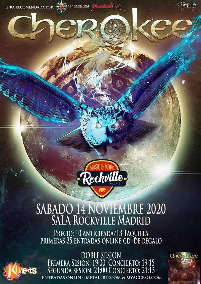 El sábado 14 de noviembre, Cherokee viajará a Madrid a la Sala Rockville, en un concierto donde estarán presentando la actual formación de la banda, su nuevo material, su nuevo EP homónimo, “Cherokee”, los temas clásicos de la banda y alguna sorpresa.