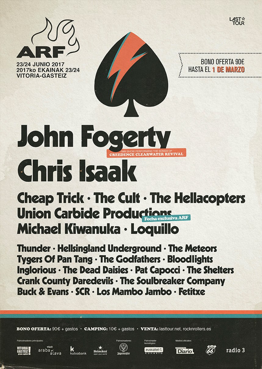 El ARF, que tendrá lugar los próximos 23 y 24 de junio en Vitoria-Gasteiz, sigue completando el cartel de este año con un listado de nombres entre los que difícilmente se podría elegir. En el recinto de Mendizabala se podrá disfrutar de estas nuevas confirmaciones junto con los ya anunciados John Fogerty, Cheap Trick o The Cult.