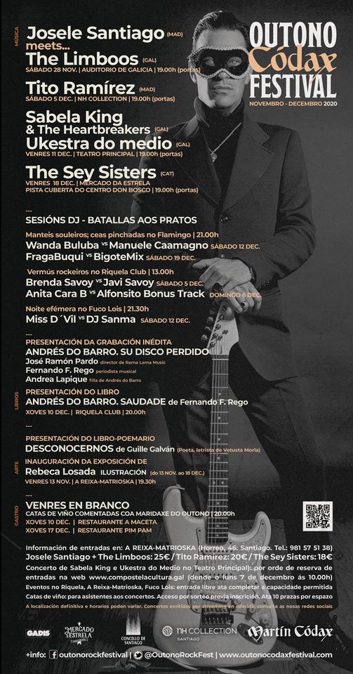 O compositor e guitarrista Josele Santiago, líder do grupo de rock Los Enemigos, estréase no Outono Códax Festival, acompañado polo tamén membro da mítica banda española de rock e guitarrista, David Krahe. Será un dos pratos fortes desta edición, incluíndo unha actuación conxunta da que non desvelaremos repertorio pero que incluirá algúns dos temas favoritos dos artistas.