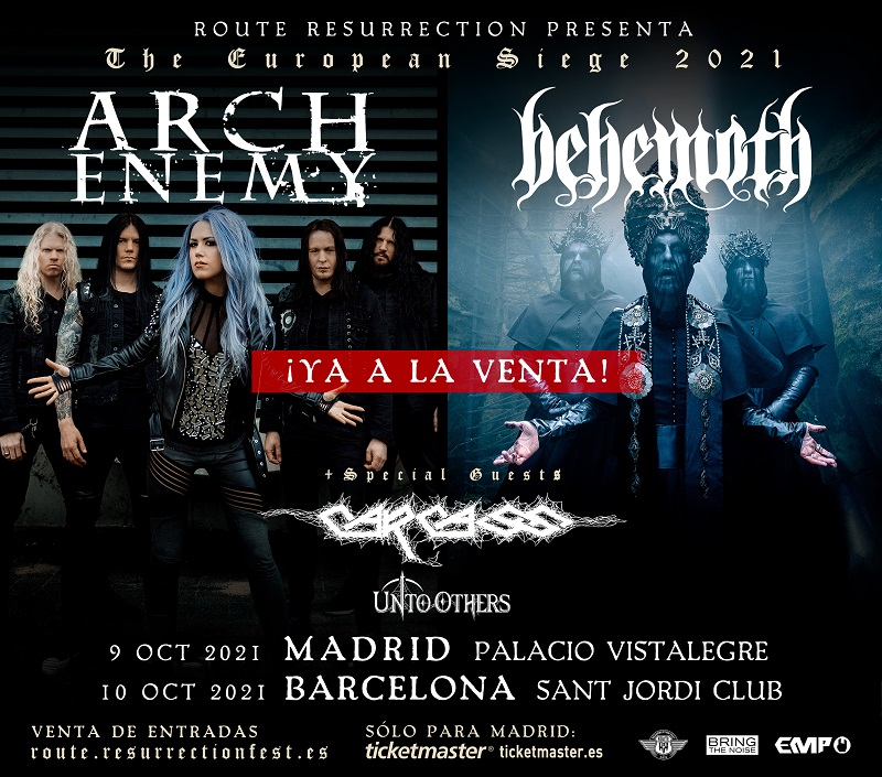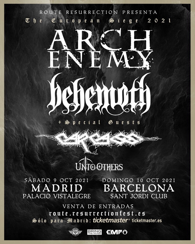 “Tras más de un año de parón de música en directo, creemos que no hay mejor manera de volver a nuestras queridas legiones de fans que con nueva música y una actuación para la posteridad: el “European Siege Tour”, una combinación aplastante de Carcass, Arch Enemy y Behemoth. También estamos muy orgullosos de los brillantes y únicos Unto Others, que nos ayudarán a calentar en estas noches mágicas de metal.
