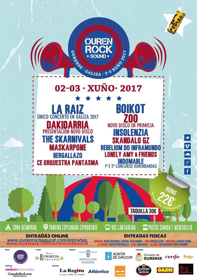 Puedes adquirirlos en cualquier oficina de correos y on line en www.musikaze.com/ourenrocksound - www.ourenrocksound.com/entradas