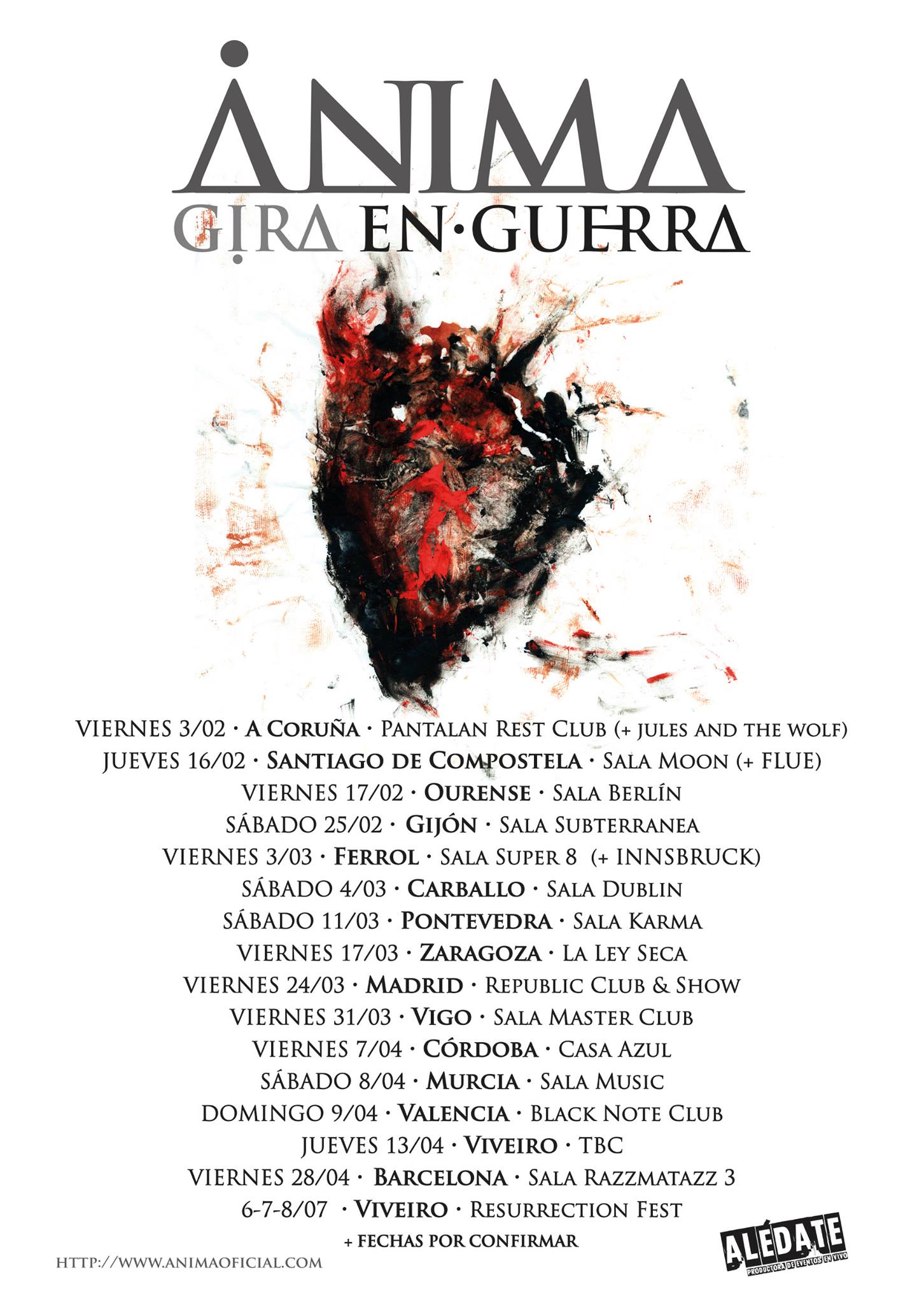La banda coruñesa de Rock Alternativo Ånima continúan con la gira de presentación de su segundo trabajo "En guerra". Santiago de Compostela el jueves 16 de febrero y Ourense el viernes 17 son las próximas paradas de su gira nacional.