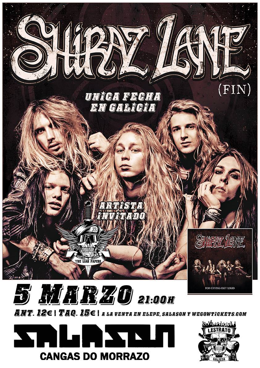 Los finlandeses Shiraz Lane cierran su gira española el próximo domingo 05 de marzo en la Sala Son de Cangas do Morrazo (Pontevedra) en la que será su única fecha en Galicia. Considerados la nueva sensación del hard rock escandinavo son un grupo de esos que, si te estás aburriendo en el bar, con tu cerveza en la mano y no esperas que nada ocurra, te hacen salir de tu equivocación. Si te gustan Skid Row, Aerosmith o Guns N’ Roses, dadles una oportunidad, porque les vas a adorar.
