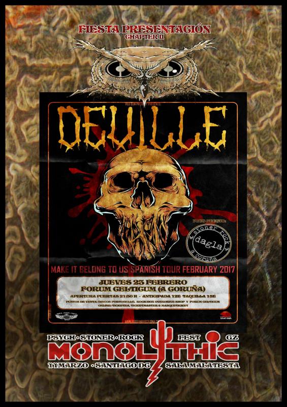 El conciertazo doble formado por los suecos Deville y los coruñeses Dagla se convierte en la 2ª Fiesta de Presentación del Monolithic Fest 2017. Dicho concierto se celebrará el Jueves 23 de Febrero en el Forum Celticum de A Coruña (Culleredo).