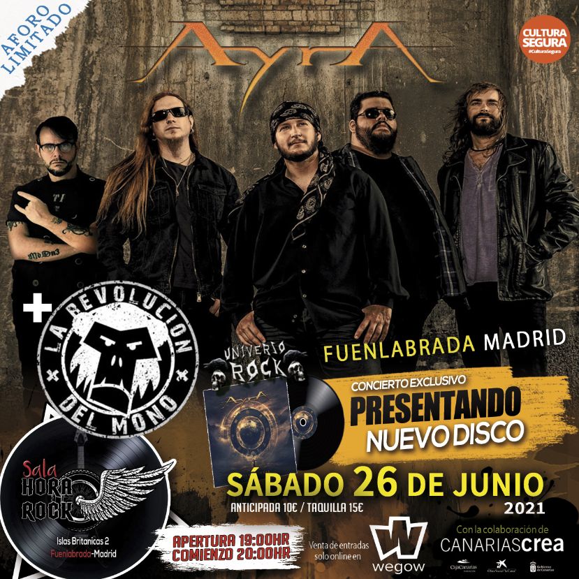 La banda canaria Ayra empieza a presentar en directo su primer disco “Silent Veil” y la primera fecha confirmada es el día 26 de junio en la Sala “Hora Rock” de Fuenlabrada (Madrid), junto al grupo La Revolución Del Mono.