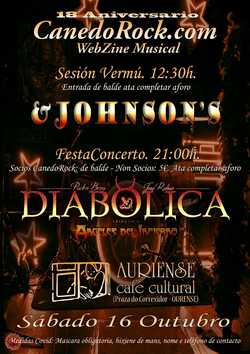 Los ourensanos &Johnson's serán los encargados de amenizarnos la Sesión Vermú y Diabólica, la banda tributo a Ángeles del Infierno de Pacho Brea y José Rubio, serán los encargados de poner la guinda a nuestra Fiesta-Concierto ya por la tarde.