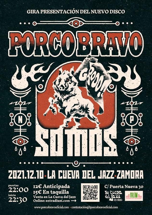 FHLIM-DOURO presenta a Porco Bravo en concierto el próximo 10 de Diciembre de 2021, en la legendaria Sala La Cueva del Jazz de Zamora.