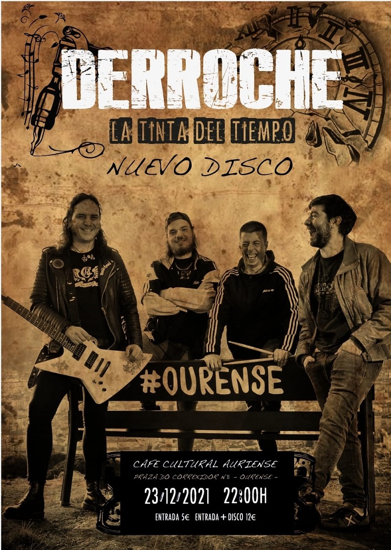 Los rockeros ourensanos Derroche estarán presentando su último disco, "La Tinta del Tiempo", en el Café Cultural Auriense de Ourense el próximo 23 de diciembre.