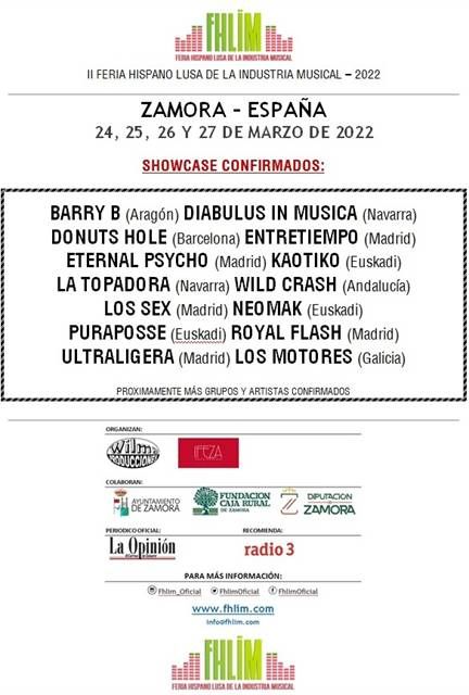La Feria Hispano Lusa de la Industria Musical – FHLIM 2022 anuncia los 14 primeros artistas confirmados en su esperada segunda edición que se celebrara en el Recinto Ifeza entre las jornadas del 24 al 27 de Marzo 2022 en Zamora.