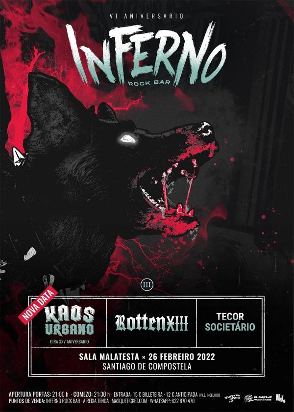 El concierto forma parte de la celebración del VI aniversario del Pub Inferno de Santiago de Compostela, uno de los pocos reductos metaleros que resisten el paso del tiempo en la capital de Galicia, y, por descontado, que continuará en el interior del Pub una vez finalizado el concierto.