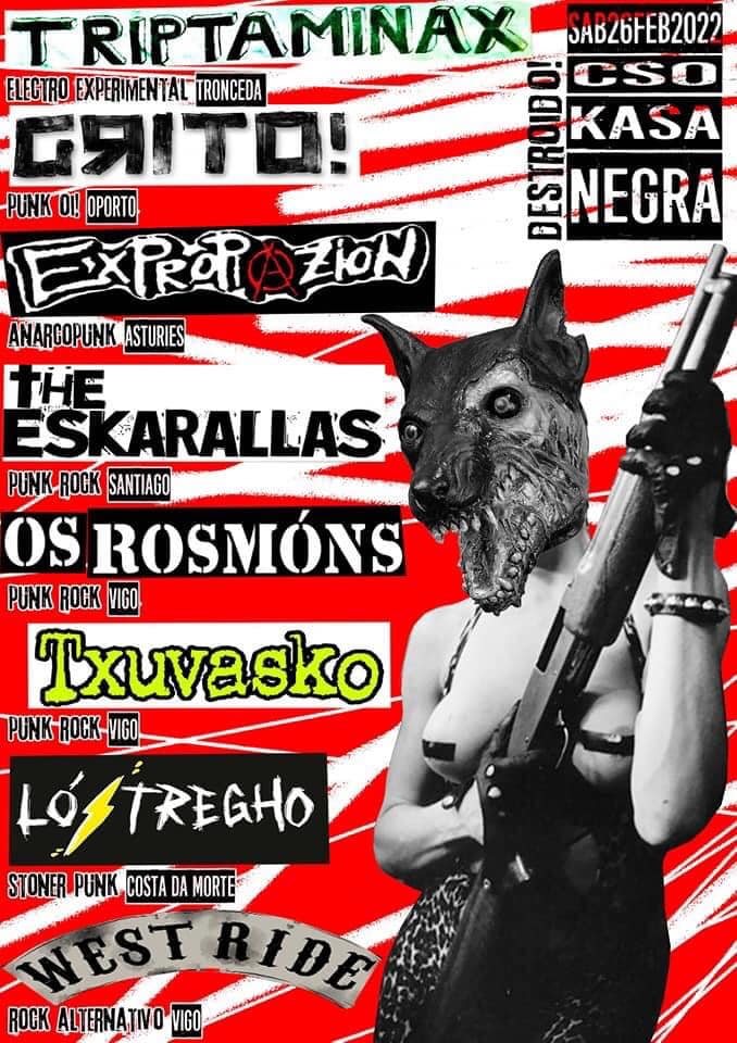 Os concertos celebraranse a tarde e a noite coa participación de Os Rosmons, West Ride e Expropiazión a partir das 18:00h. E Grito!, Triptaminax, Txuvasko, Lostregho e The ESskarallas a partir das 23:00h.