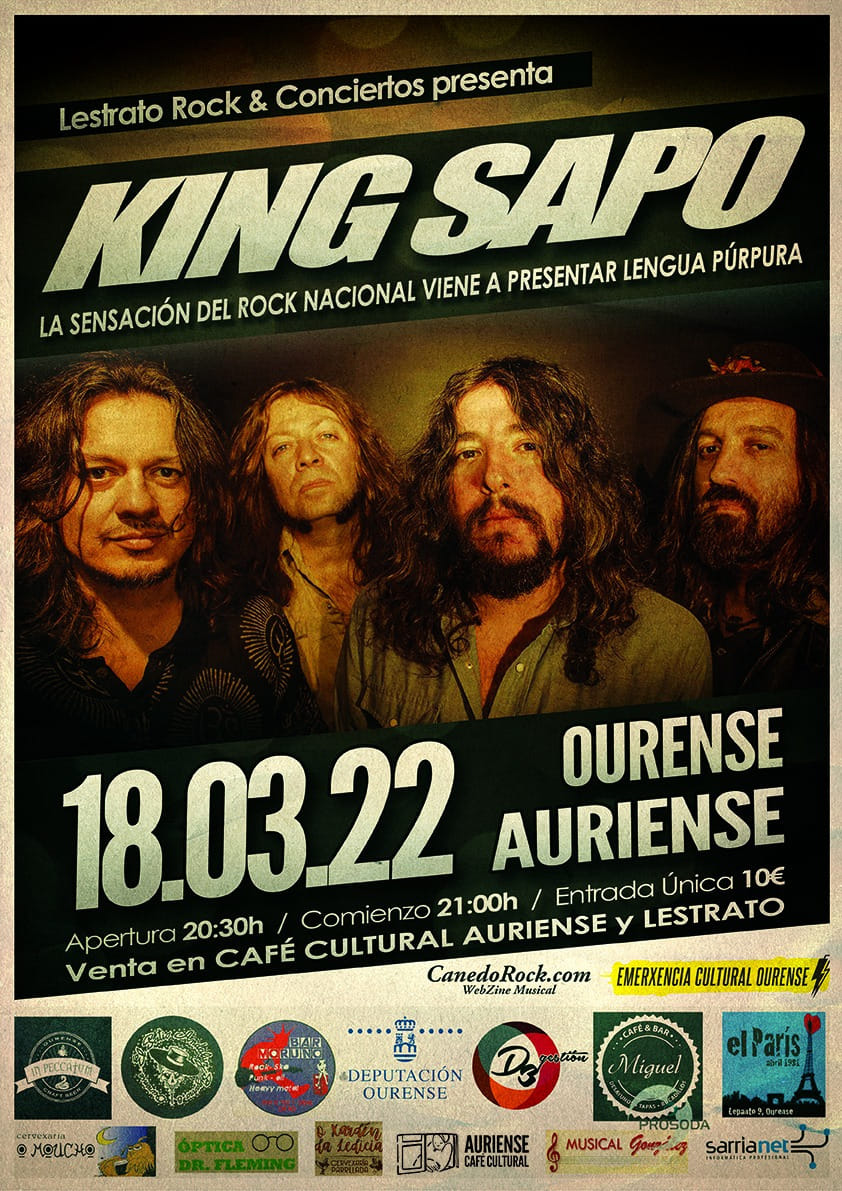 Ourense el viernes 18 de marzo, Cangas do Morrazo el 19 y Lalín el 20 serán las tres localidades donde podremos disfrutar del buen hacer de King Sapo en directo este próximo fin de semana.