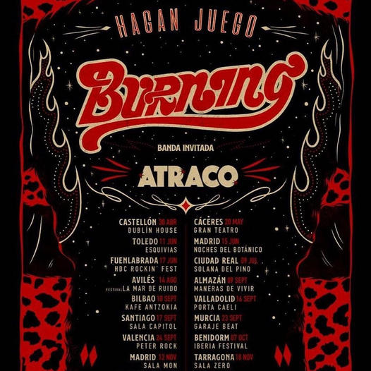 Junto a ellos, como teloneros, estará Atraco, otra banda de Madrid cuyo estilo musical encaja a la perfección con Burning.