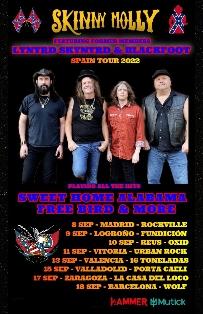 Los norteamericanos Skinny Molly, con ex miembros de Lynyrd Skynyrd, Blackfoot y la Rossington Band en sus filas, regresarán a nuestro país a principios de septiembre.