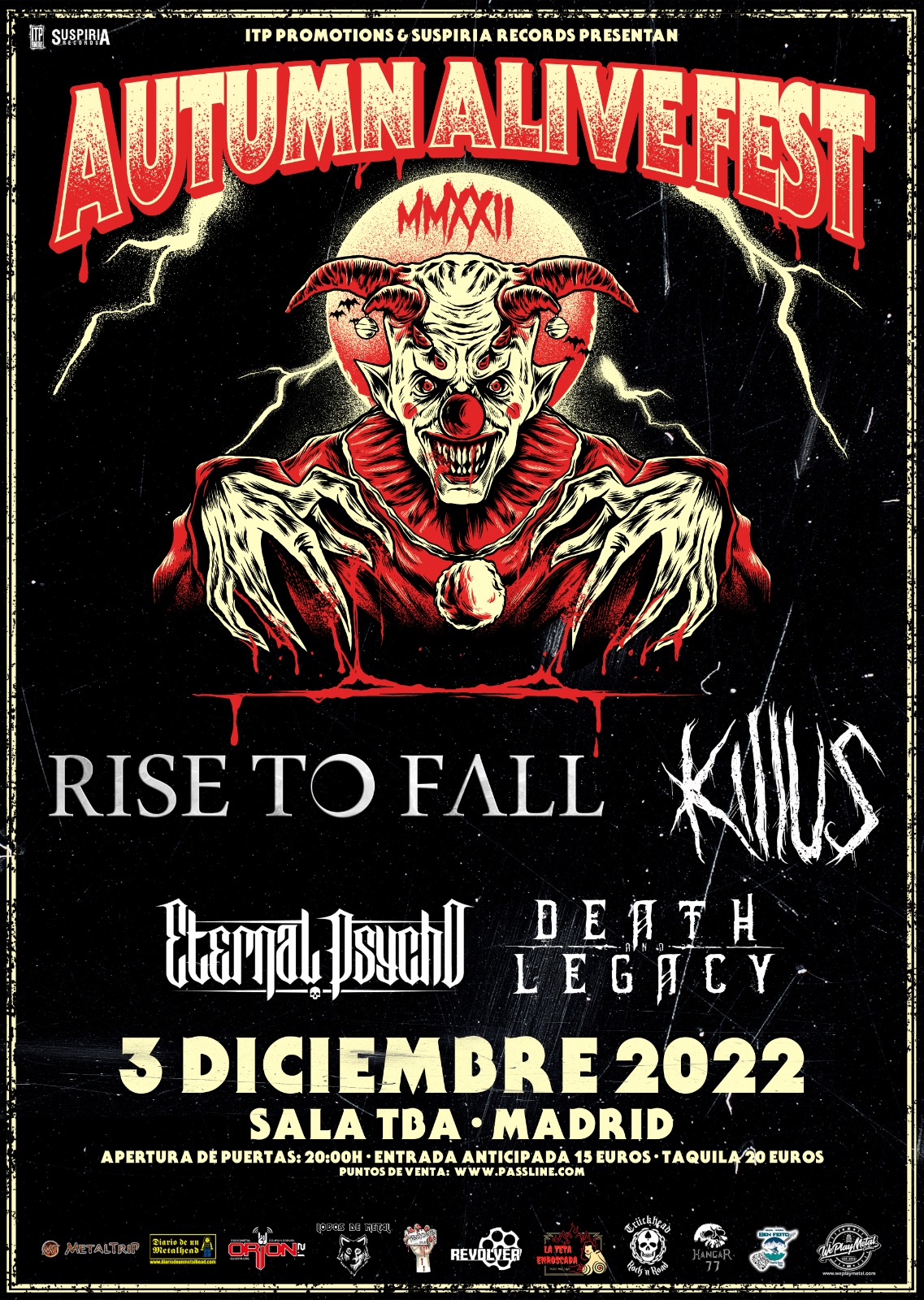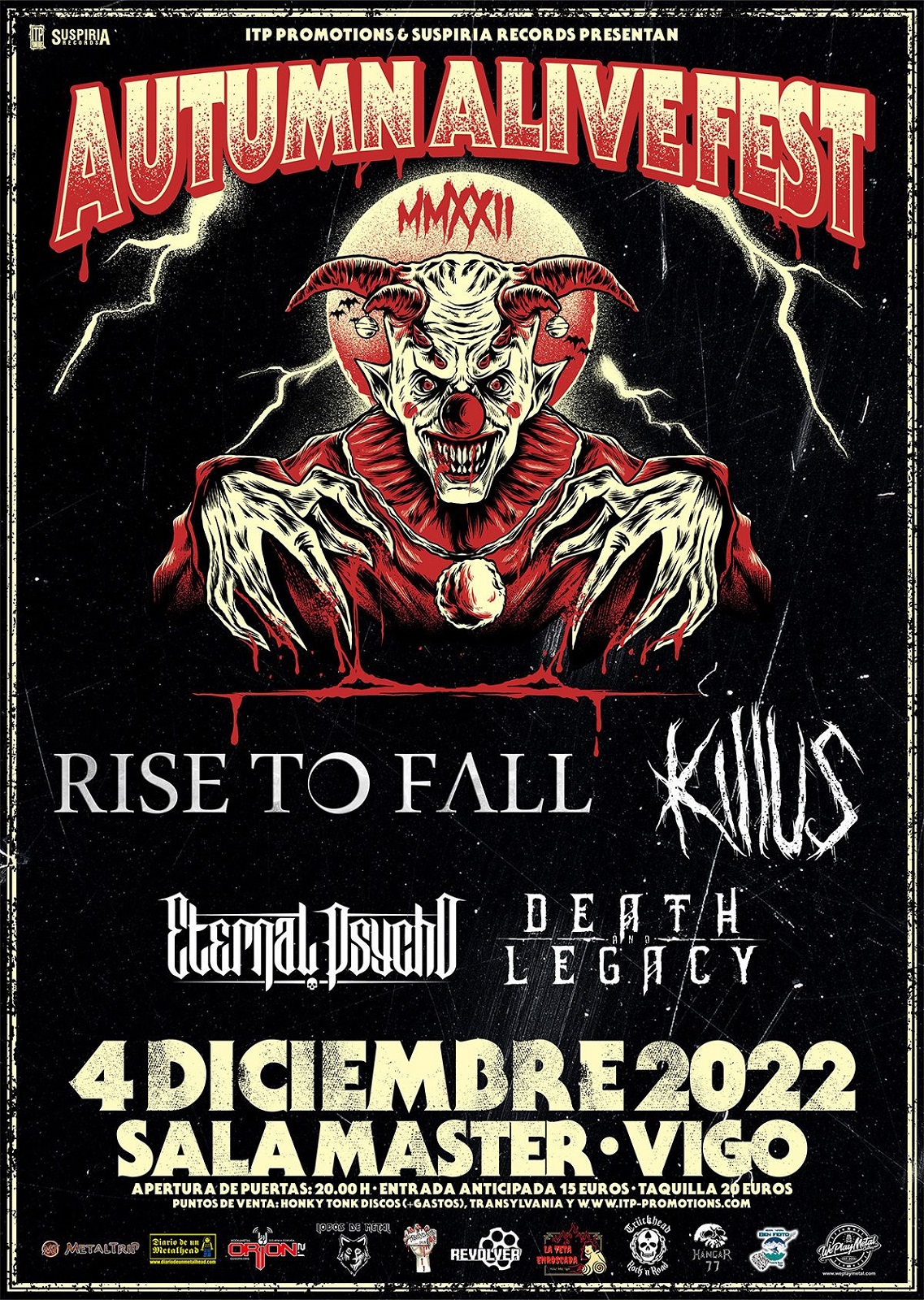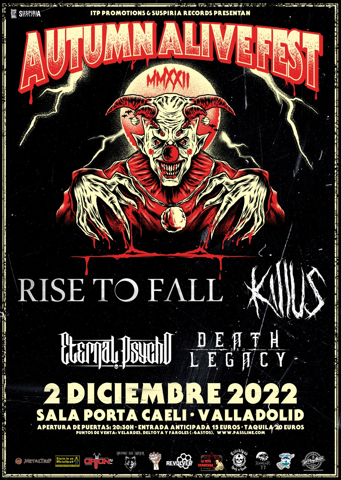 Rise To Fall, Killus, Eternal Psycho y Death & Legacy serán los encargados de la banda sonora en Valladolid, Madrid y Vigo.