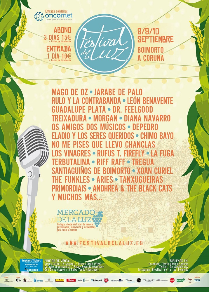 Este año, el Festival de la Luz es posible gracias al apoyo y la colaboración de: Concello de Boimorto, Estudio Mans Paideia, Diputación da Coruña, Gadis, Mahou, Agadic, Sabadell, AIE, Fundación Sgae, Inorde, HGA, Caeiro, Cocacola, Feiraco, Petroni y Cadena Ser.